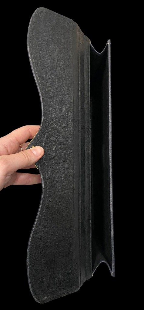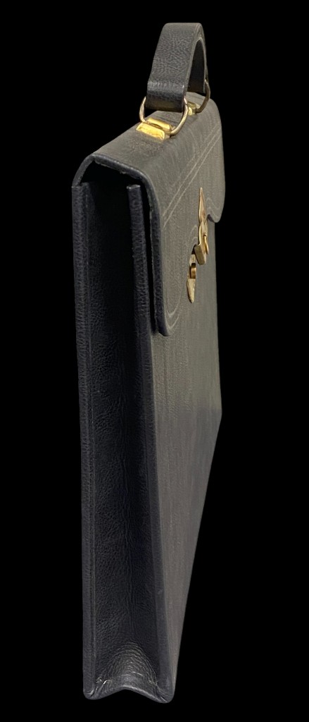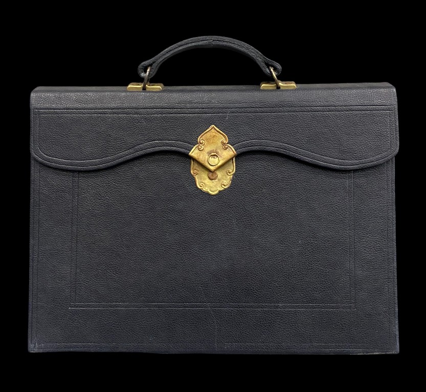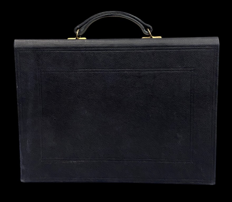 Schwarze, genietete Reisetasche mit Kupferverschluss