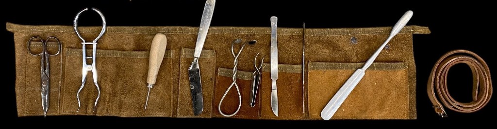 Ärztliches Set aus dem 19. Jahrhundert in Lederrolle