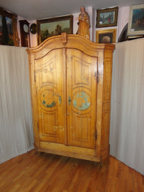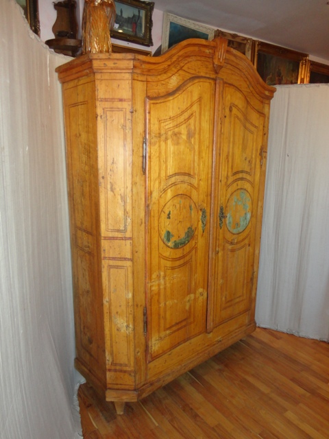 Bemalter Zopfschrank: um 1800. Fichtenholz. Zustand: gereinigt, restauriert, gebrauchsfertig. Mit bemalten Intarisen Imitationen. Mit Schlüssel, mit funktionsfähigem Schloß.