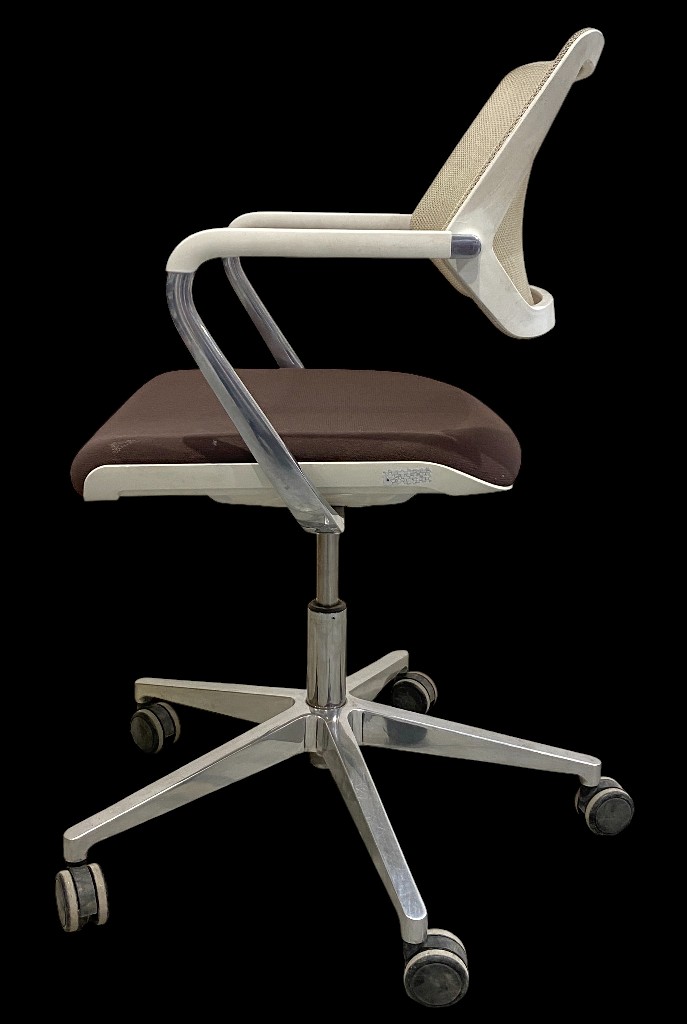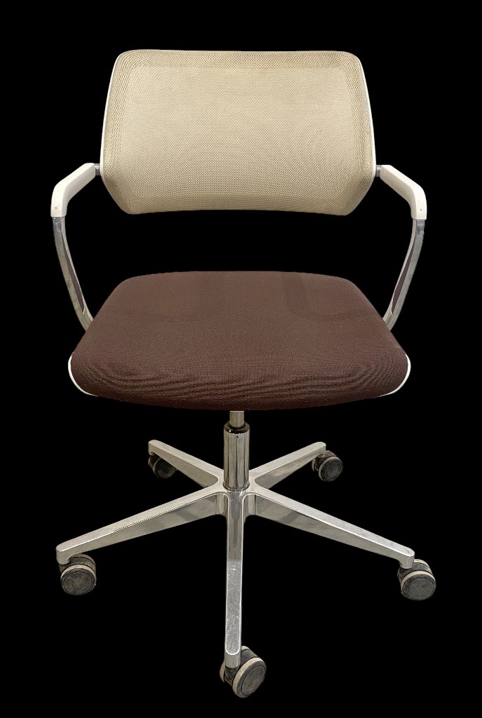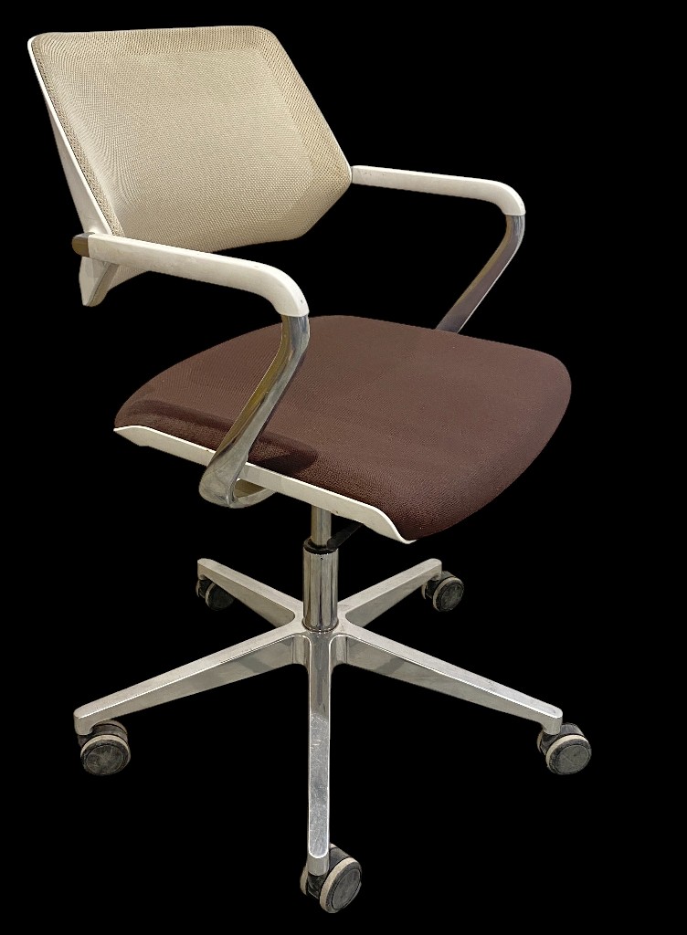 Braun/beiger Design-Bürodrehstuhl mit Netzrückenlehne