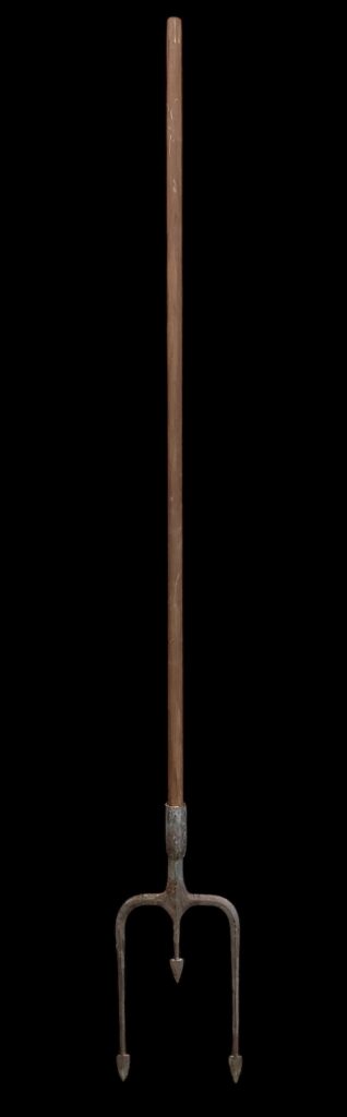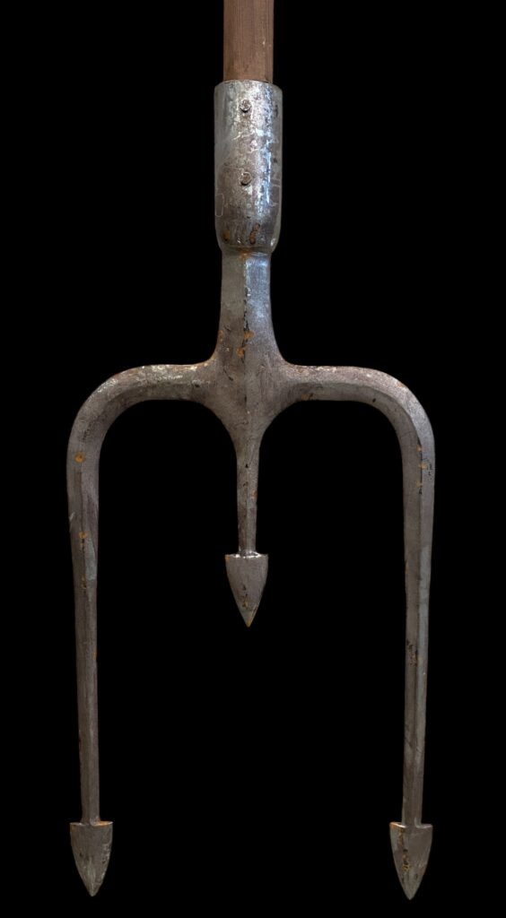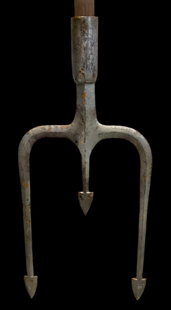 Dreizackige Harpune mit Metallkopf: 20. Jh. An einem Holzgriff. In gutem Zustand. Größe: 258 x 31 x d=4 cm