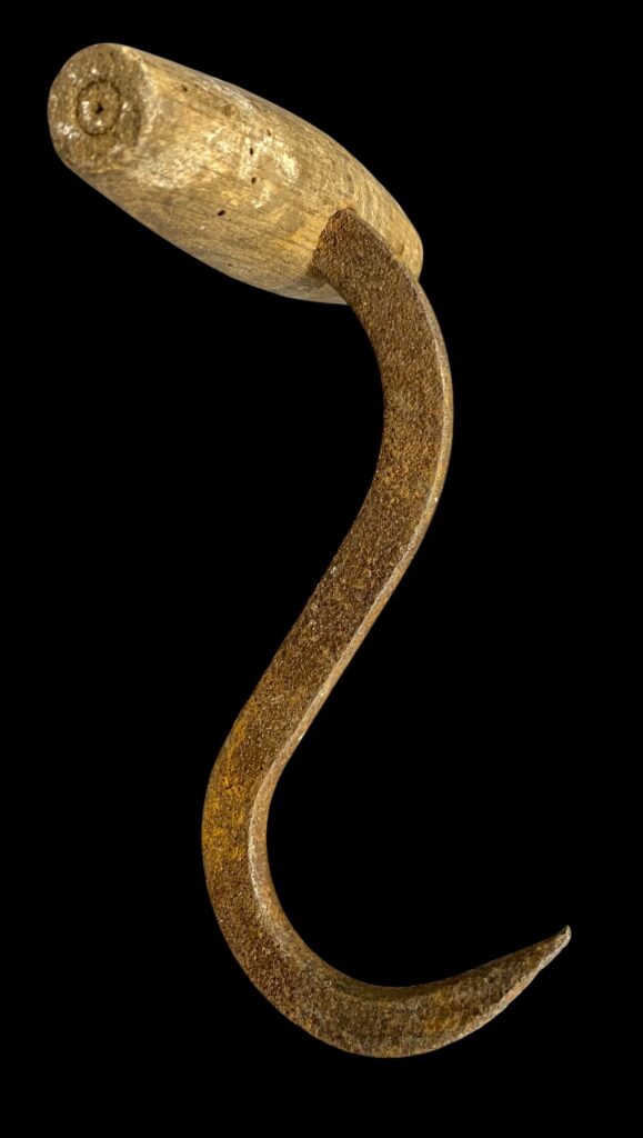 20. Jahrhundert. Mit fassförmigem Holzgriff und Stahlhaken. In gutem Zustand.