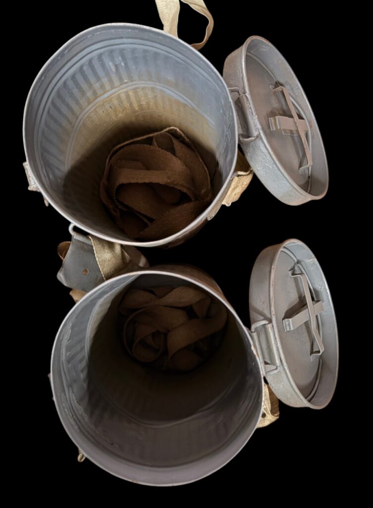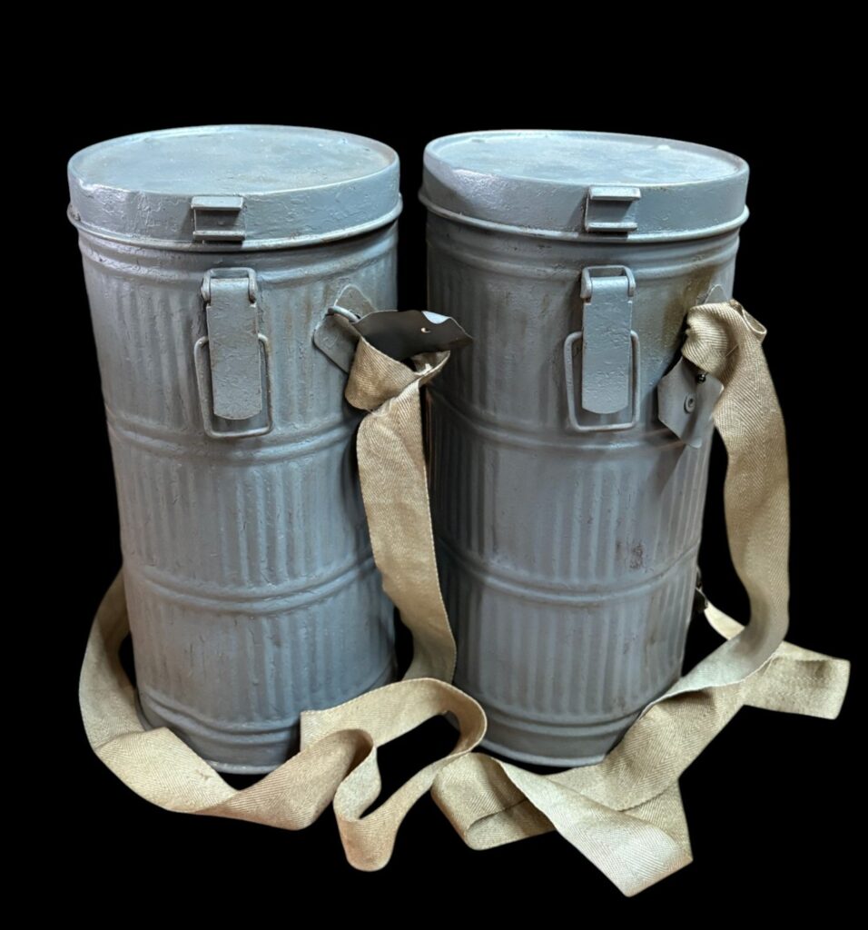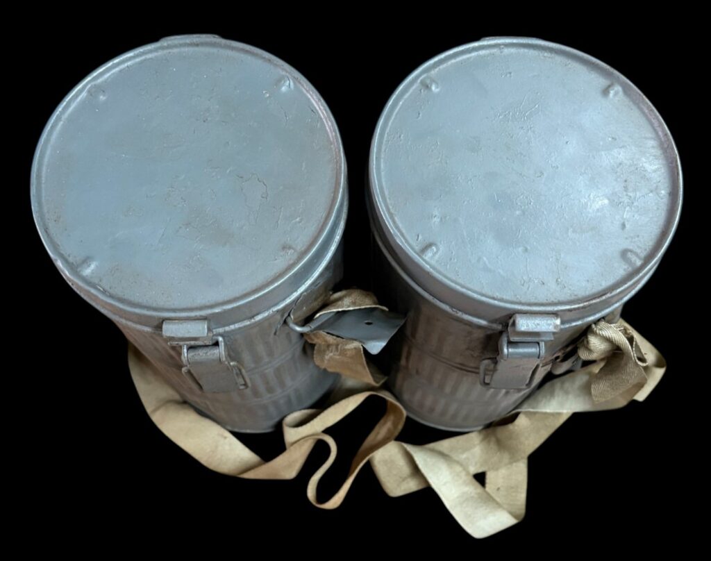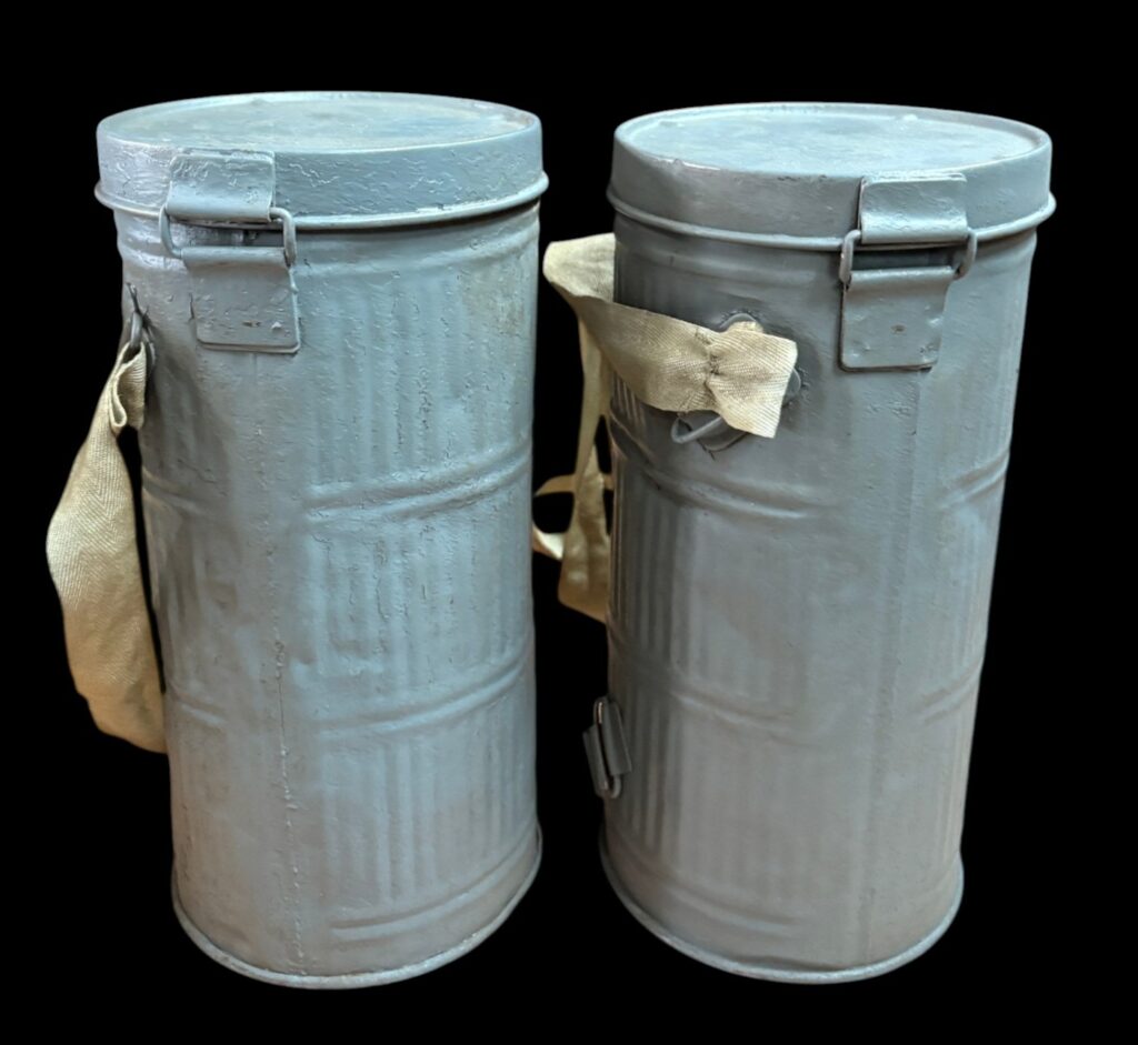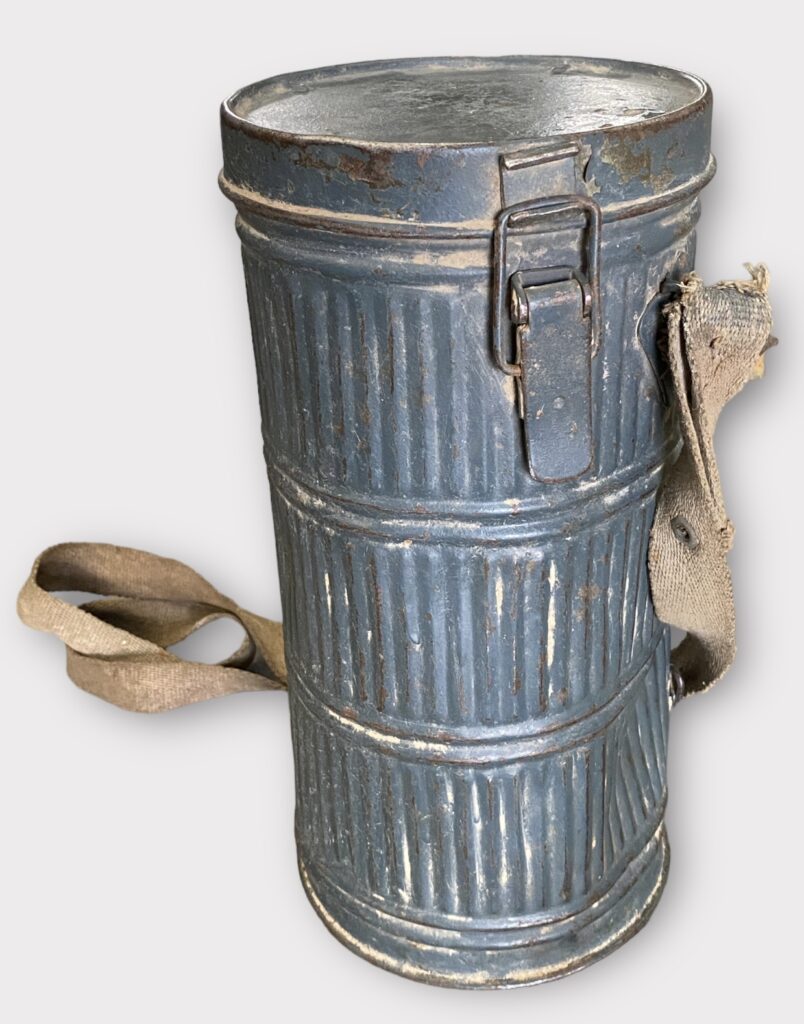 Gasmaskenhalter mit gerippter Metalldose