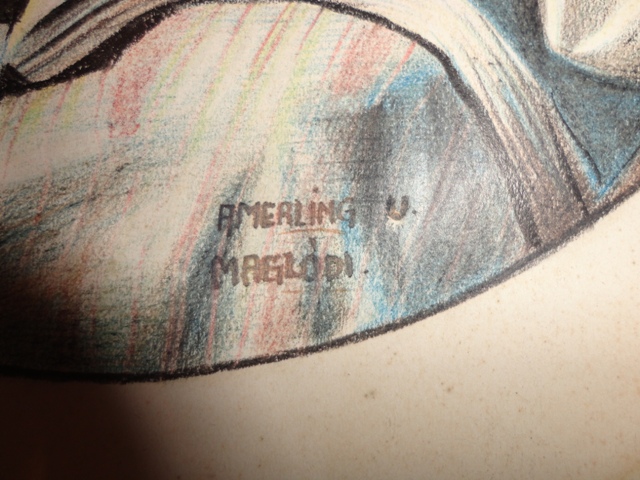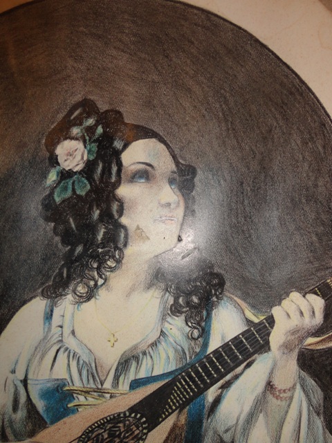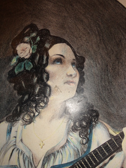 Gefärbte Zeichnung Frauenporträt: Größe: 30×23,5 cm
