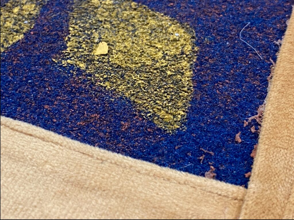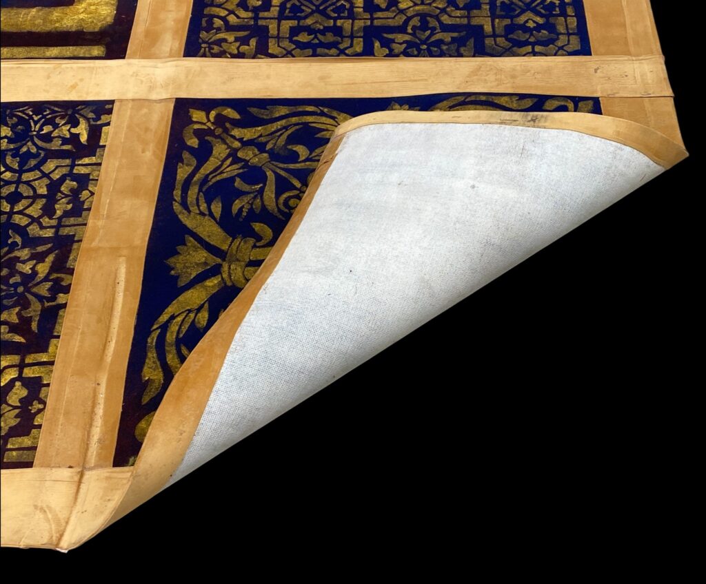 Textil, mit goldbemalter Girlandenverzierung. In gutem Zustand.