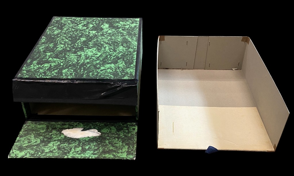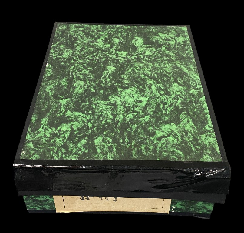 Grüne marmorierte Dokumentenbox mit öffnungsfähiger Front, 35 cm
