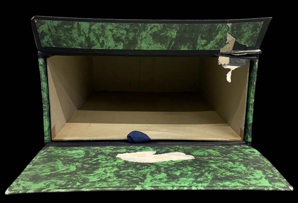 Karton. Mit ausziehbarer Papierschublade. Guter Zustand.
