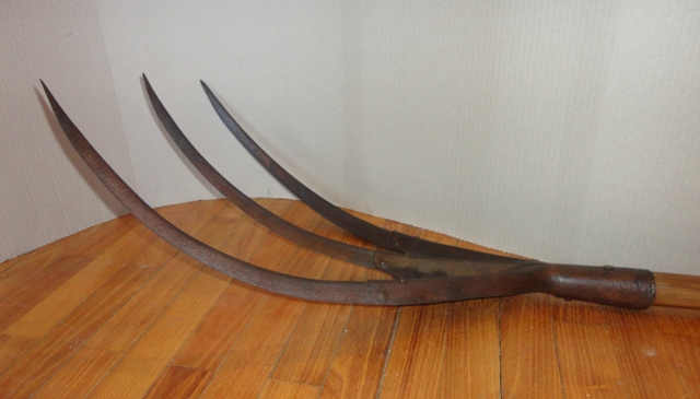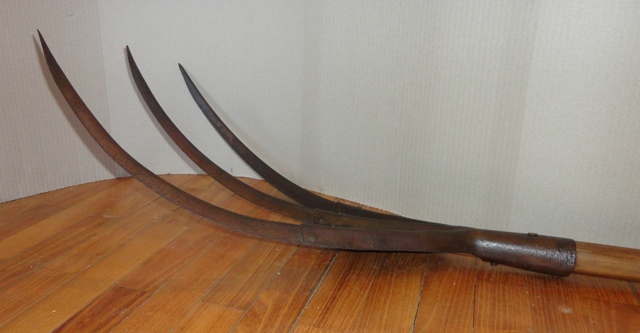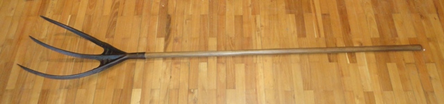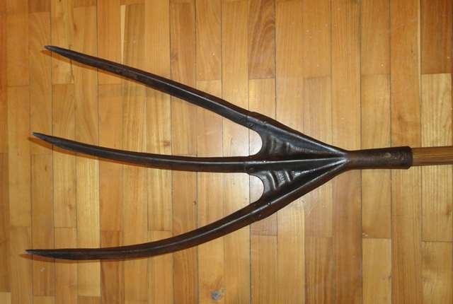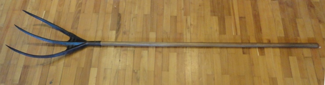 Heugabel: um 1930. Stiel aus Holz, Gabel aus Eisen. Original, schöner Zustand mit Patina.