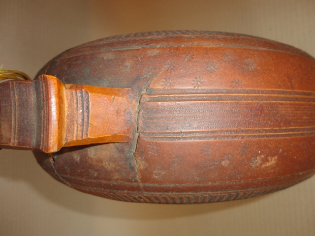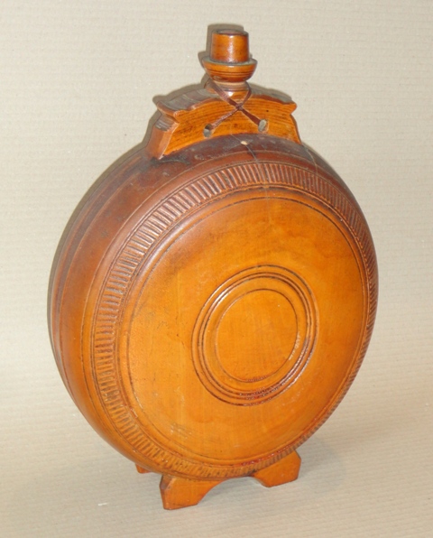 Holz Feldflasche: Anfang des 20. Jahrhunderts. Original Zustand mit Patina, mit feinem Fehler, gespaltet.