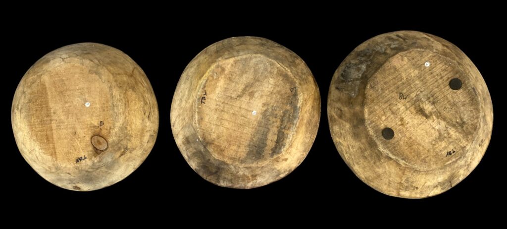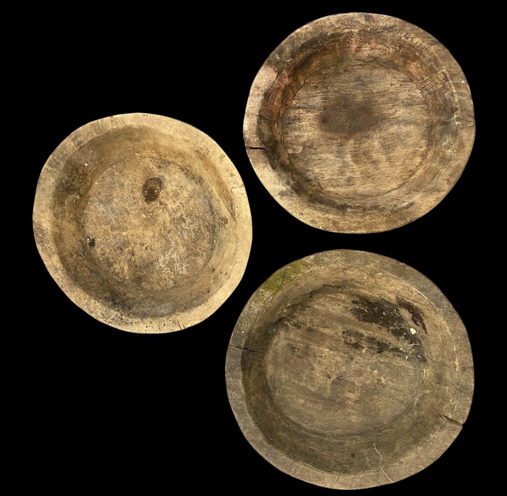 Runde Holzschale: Anfang 20. Jh. Runde Holzschale aus gedrechseltem Hartholz. Originaler, gereinigter Zustand mit Patina.