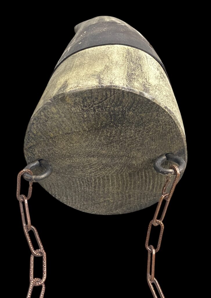 Neu angefertigtes, bemaltes Holz mit Kettenaufhängung. Guter Zustand.