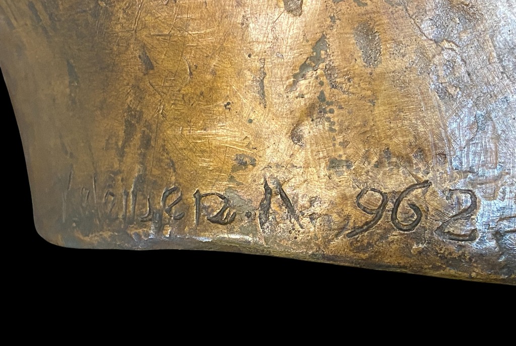 Kristóf Kelemen (Máriafölde, Rumänien, 5. August 1922 – 25. Oktober 2001). 1962. Bronze im Wachsausschmelzverfahren gegossen, auf poliertem Holzsockel. Unten hinten signiert: „Kelemen K. 962“. Guter Zustand. Ausgestellt vom 3. März bis 30. April 1981 in der Burg Simontornya. (Katalog beigelegt)