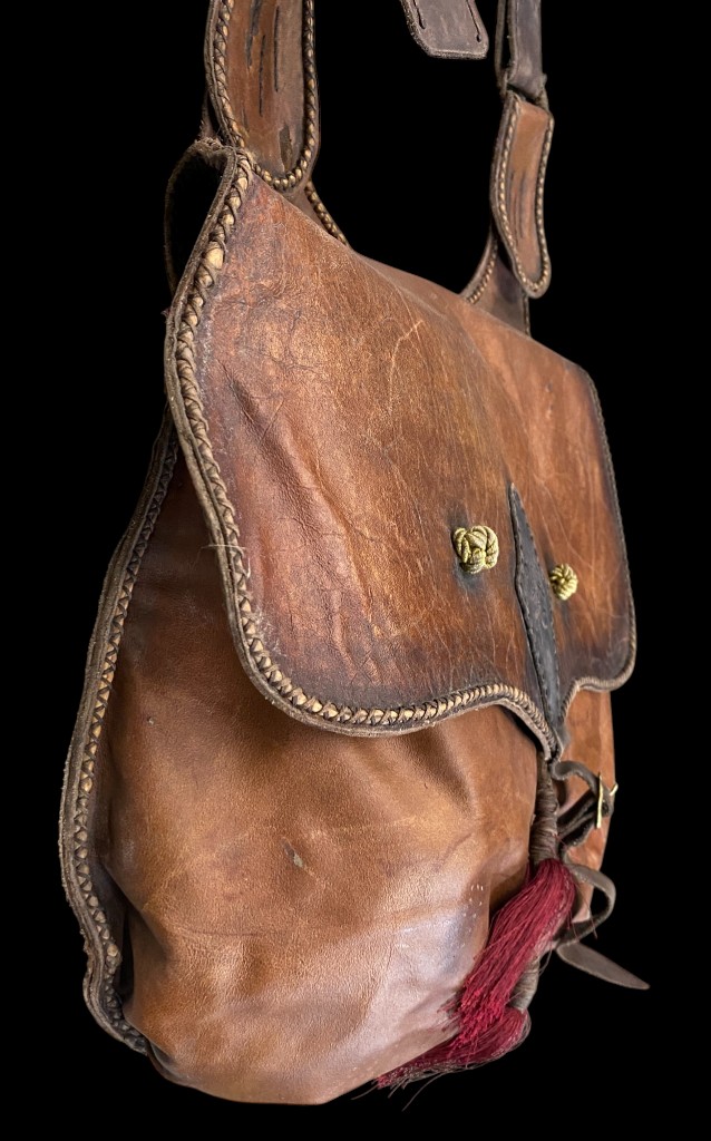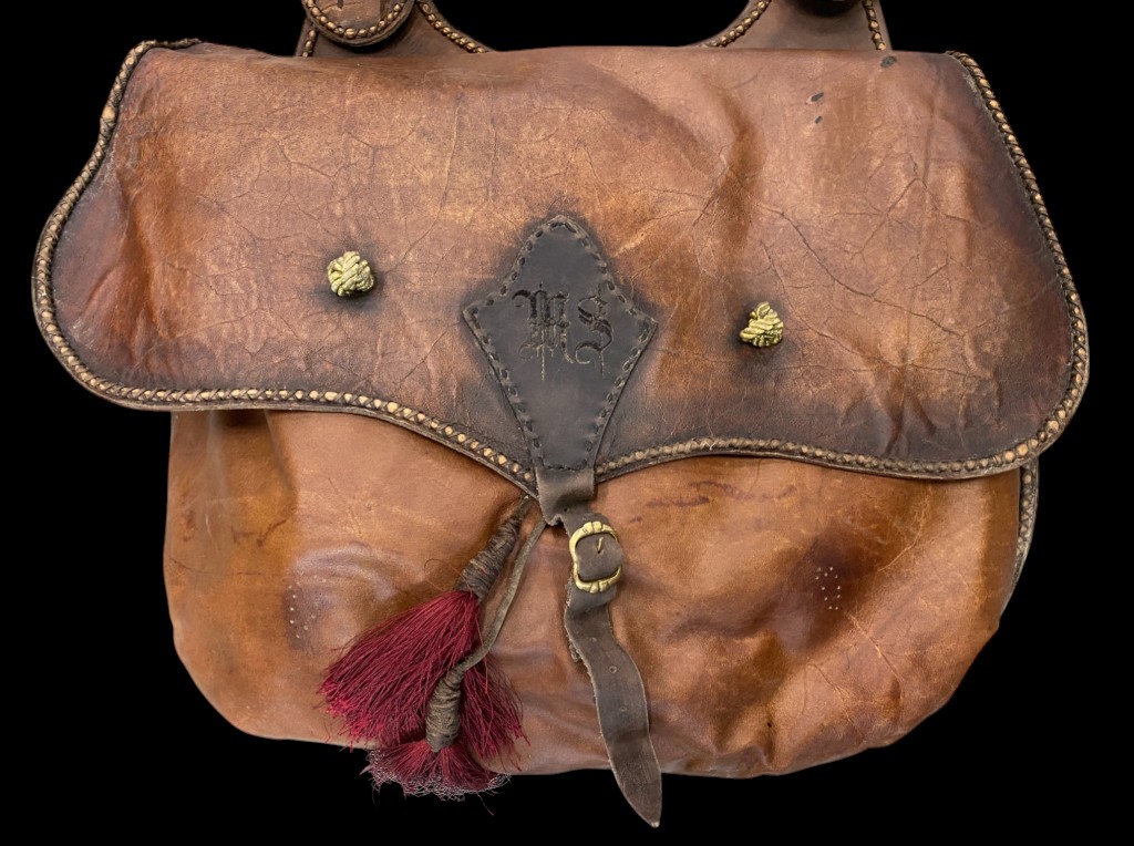 Leder-Umhängetasche mit MS-Monogramm und genähtem Rand