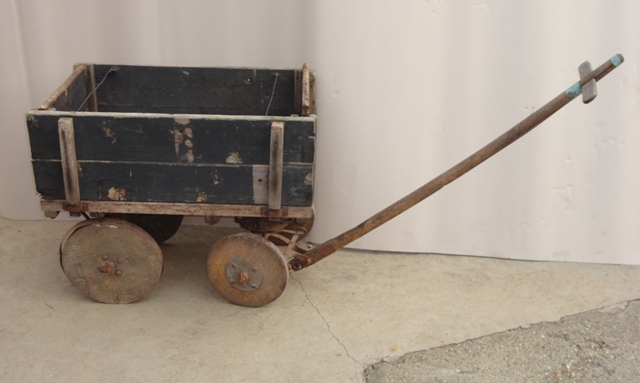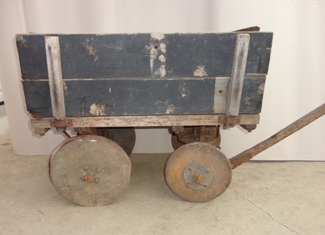 Leiterwagen1.: erste Hälfte des 20. Jahrhunderts. Holz, ziehbar. Nur zu vermieten. Größe: 59x144 (mit Stange)/ (ohne Stange) 53x53,5 cm