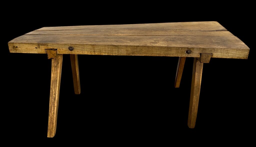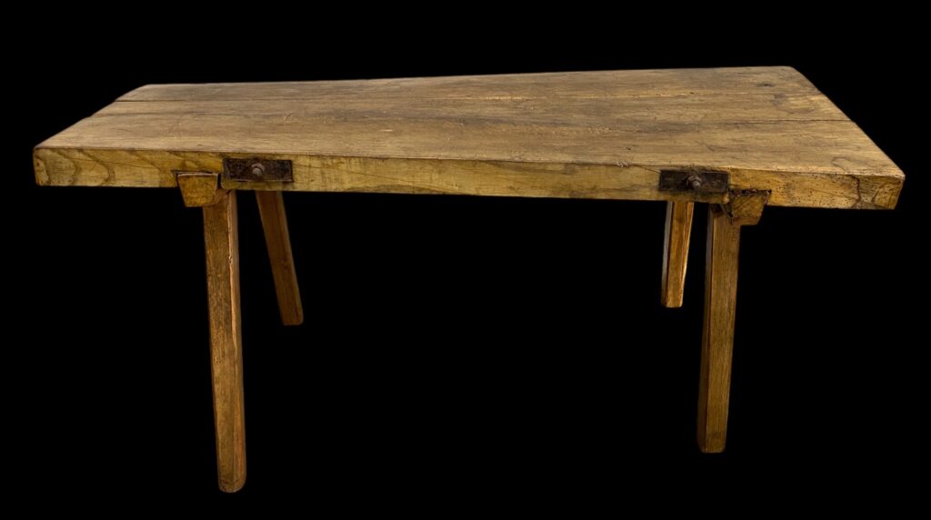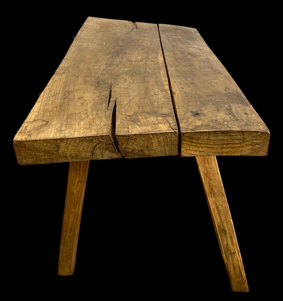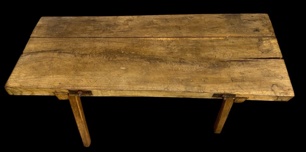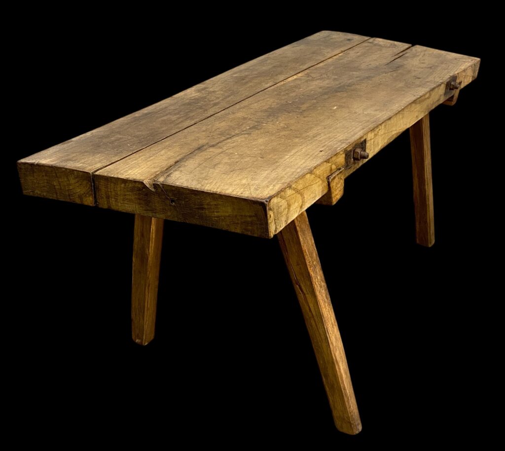 20. Jh. Hartholz, patiniert restaurierter Zustand, gewachste Oberfläche. Platte verdreht und verzogen.
