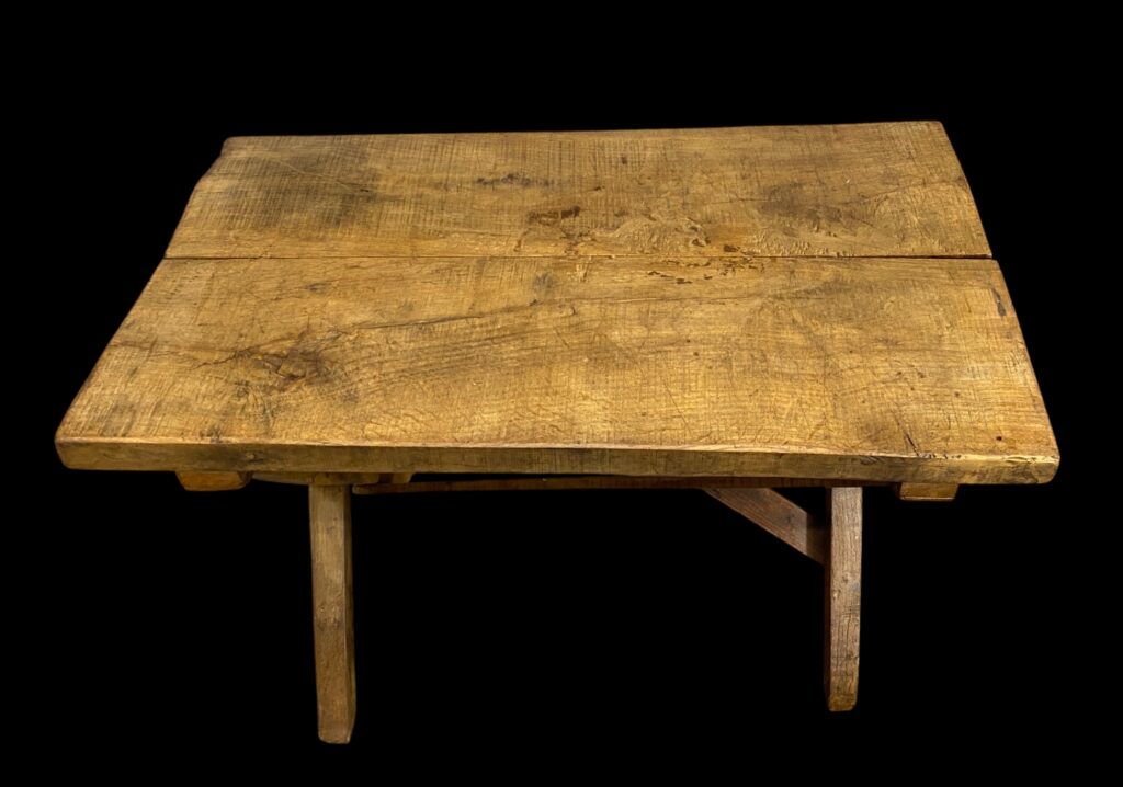 20. Jh. Hartholz, patiniert restaurierter Zustand, gewachste Oberfläche. Platte verdreht und verzogen.
