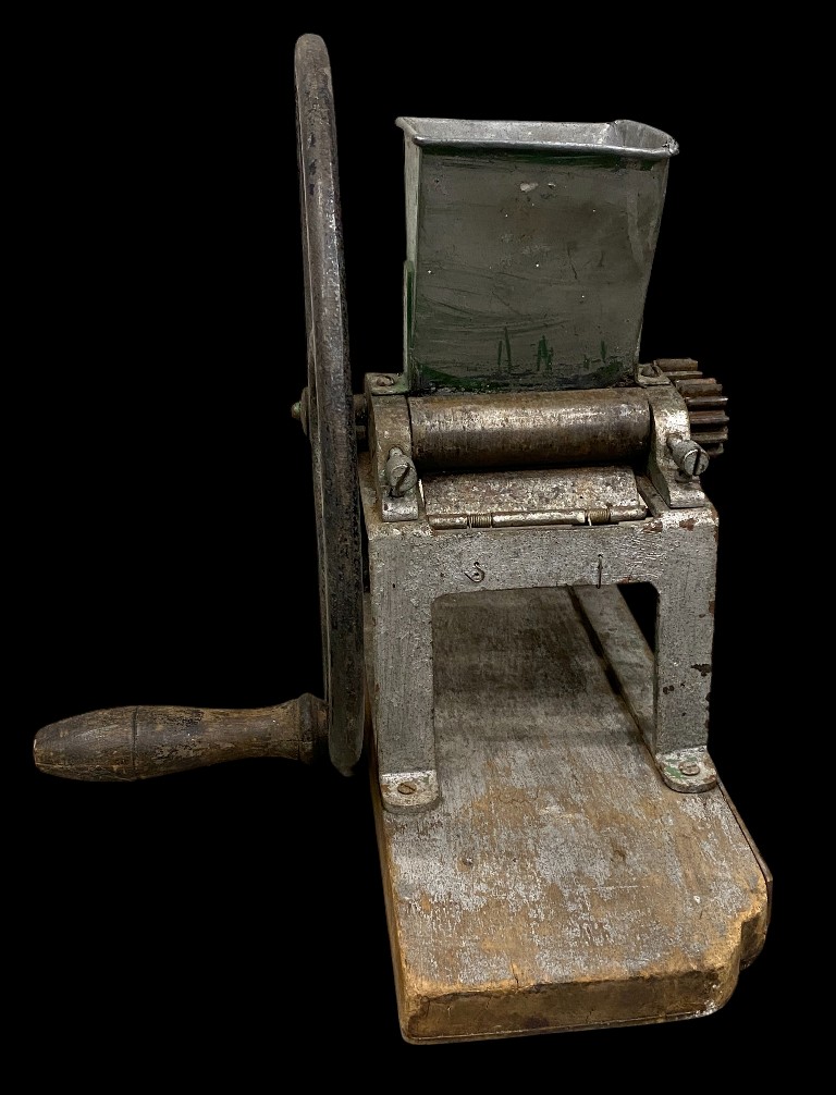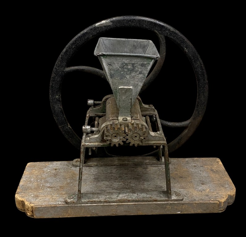 Mitte 20. Jh. Gusseisen und lackierter Stahl auf Holzsockel. In gutem Zustand.