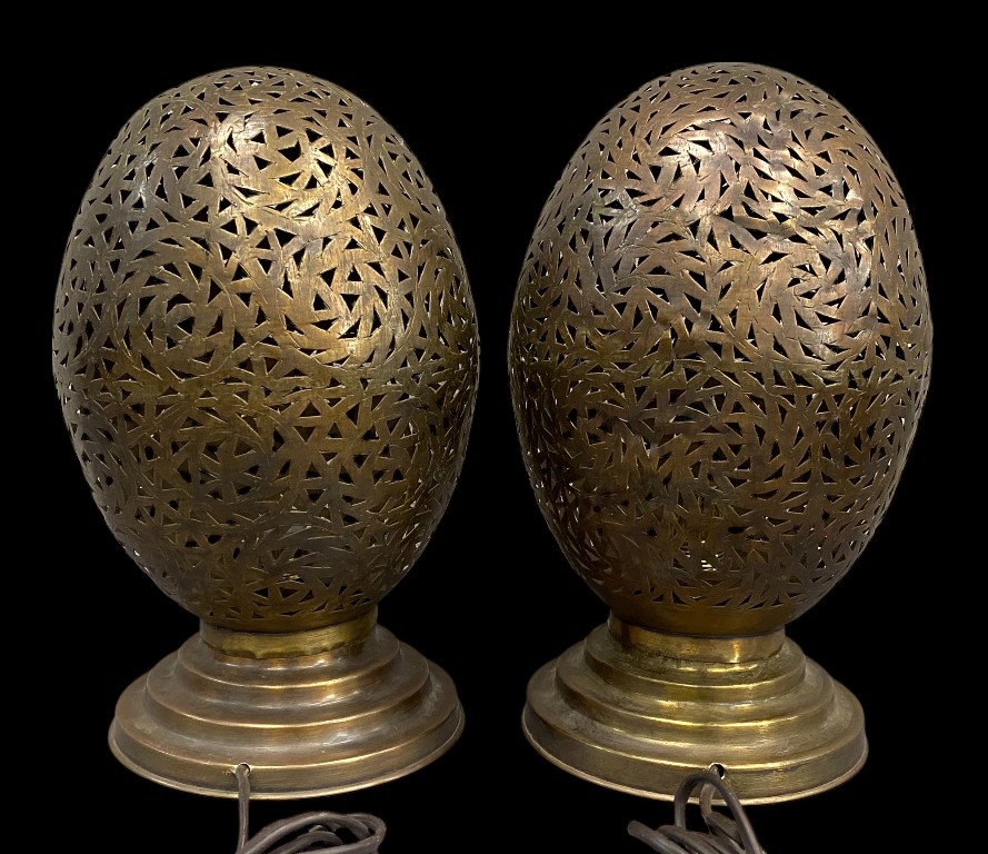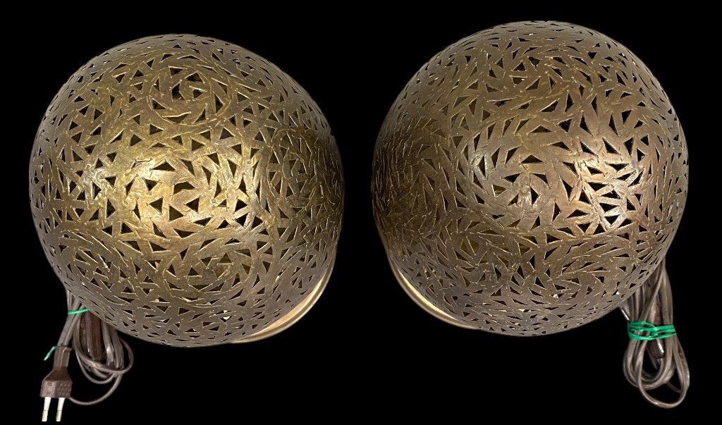 Durchbrochenes Messingblech, mit elektrischem Kabel und E14-Fassung. Betriebsbereit.