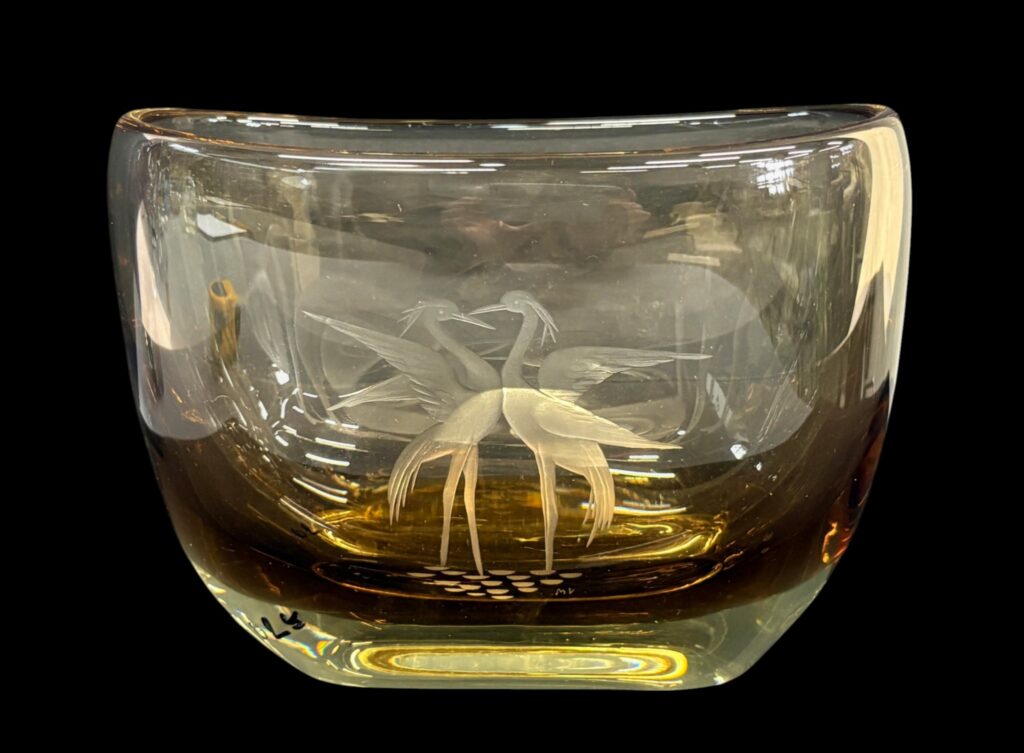 Ovale Glasvase mit Kranichpaar-Darstellung