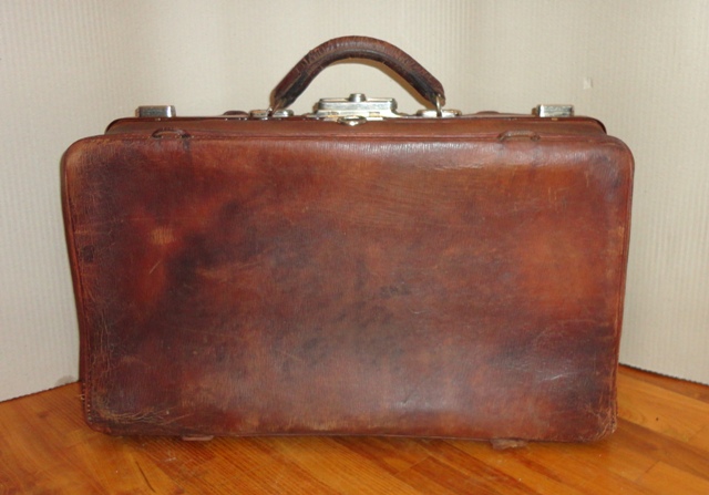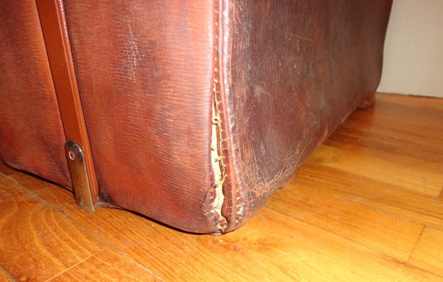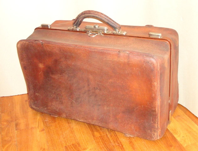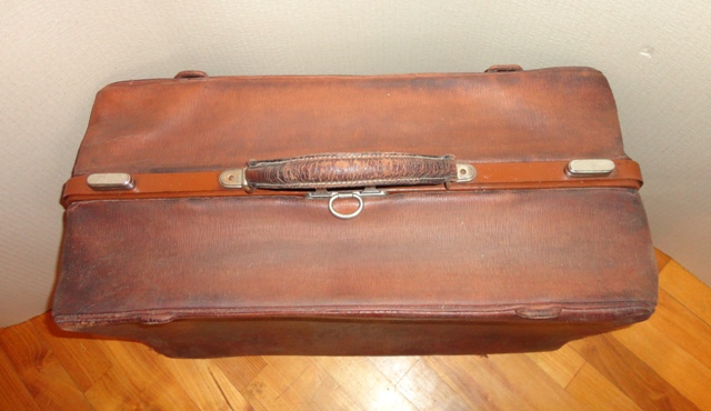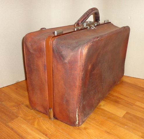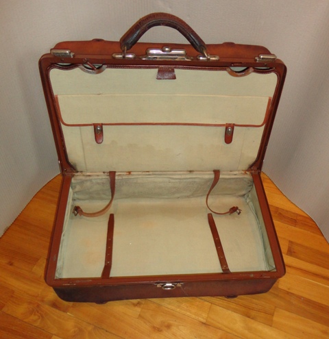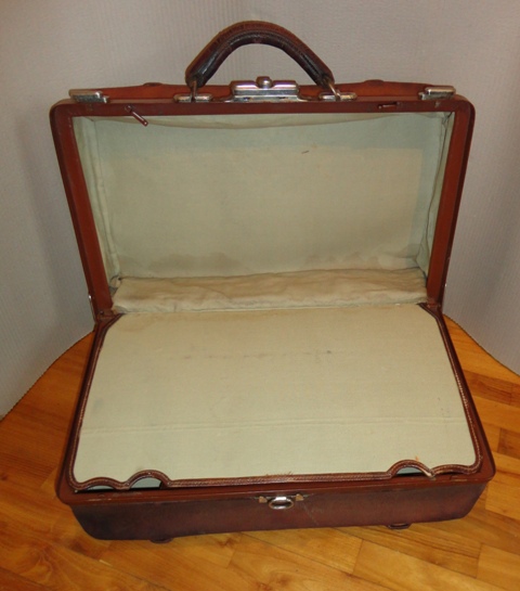 Reise Koffer: um 1900. Leder. Innen mit Zellen. Original, gereinigter Zustand. Größe: 32×54×23 cm