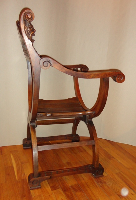 Savonarola Sessel 5.: 20. Jahrhundert. Geschnitztes Hartholz. Zustand: original, gereinigt, betriebsbereit.