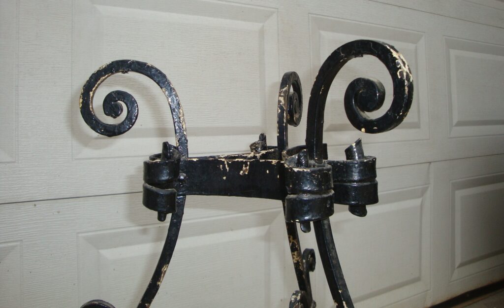 Schmiedeeisen Übertopf Gestell: um 1900. Original Zustand. Größe: 80 cm groß, d=35 cm.