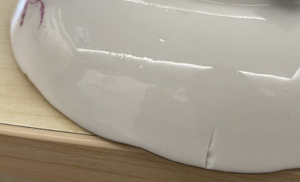 Teeuntertasse aus Herend: um 1912. Porzellan. Handgemalter burgunderroter indischer Korb mit Dekor. Mit Herend Aufschrift, Formnummer, blaue ungarische Wappenmarke in der Masse auf dem Boden. Rissiger Zustand.