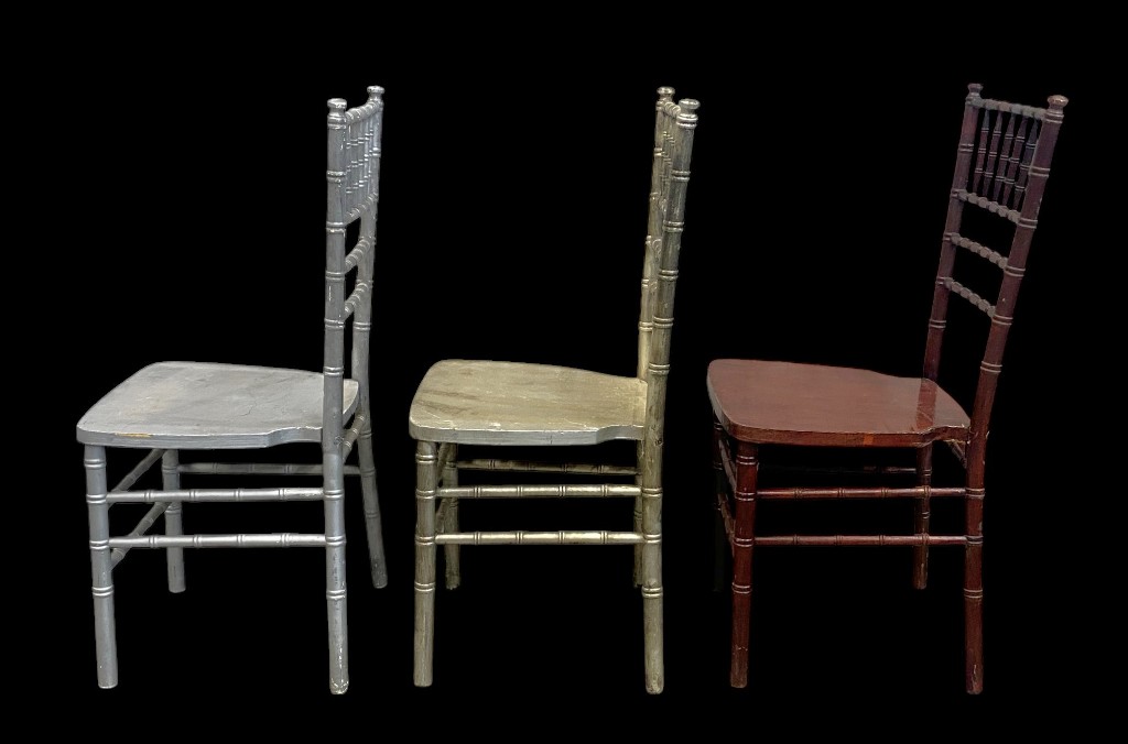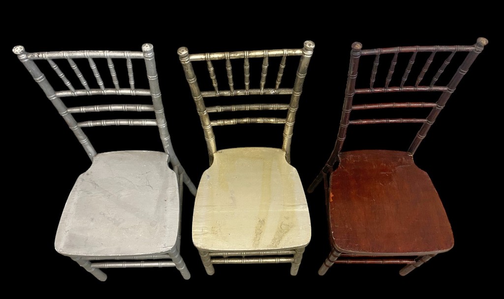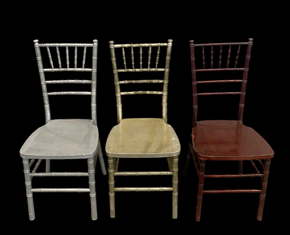 Gedrechseltes Holz und Sperrholz. In gutem Zustand. 2 Stk. Silber, 2 Stk. Altgold, 8 Stk. Mahagoni-Farbe.