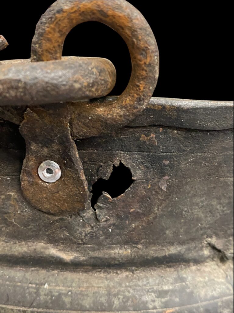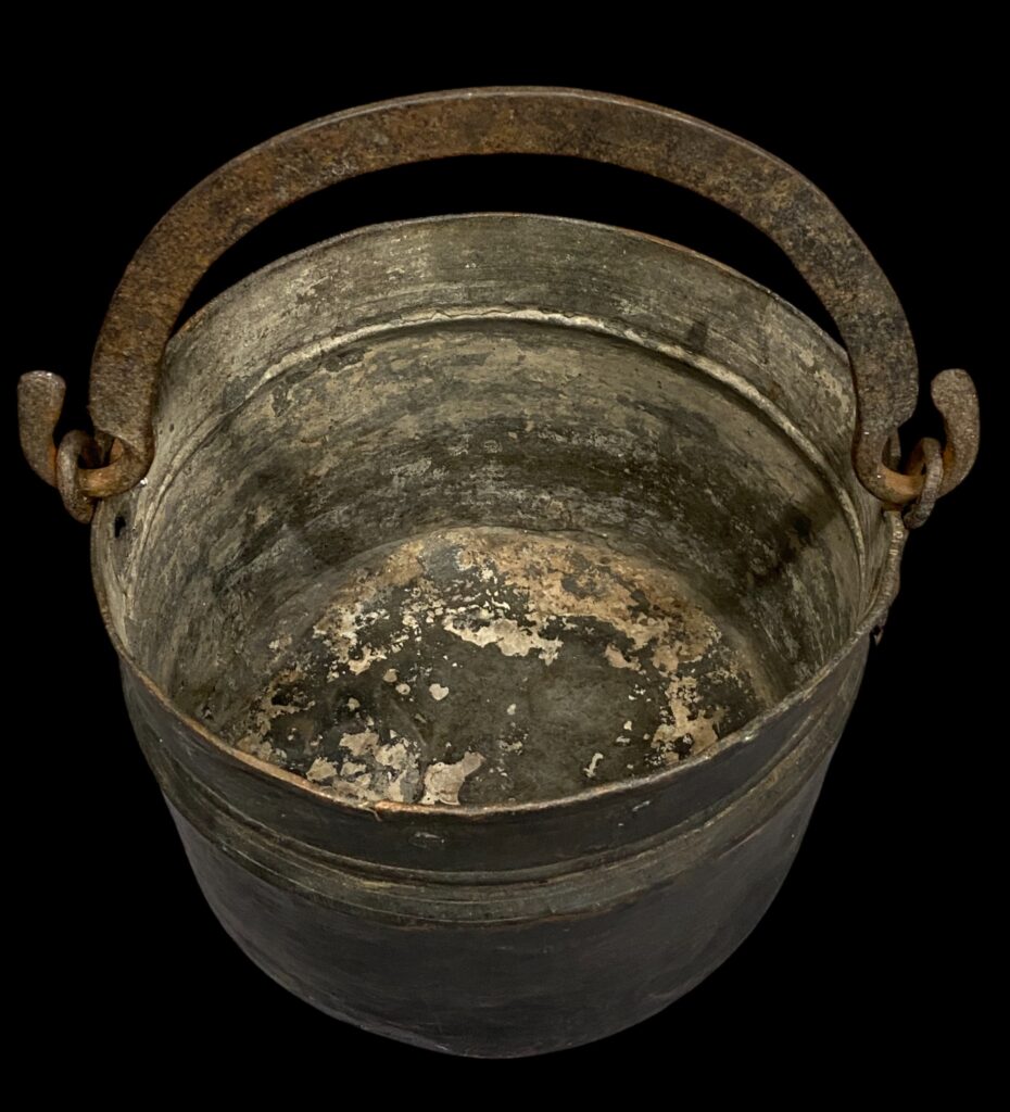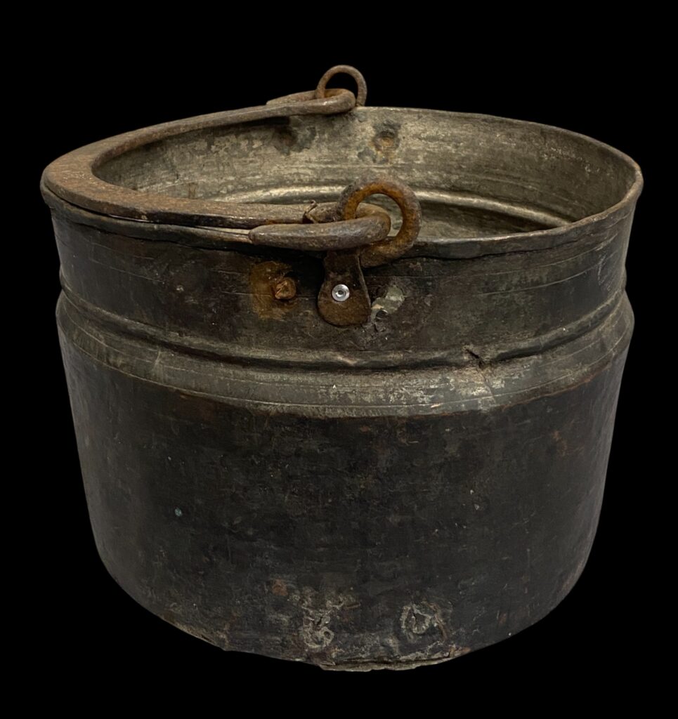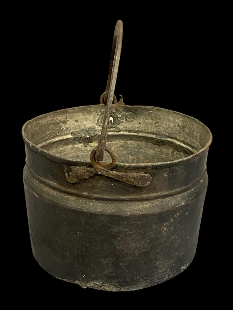 19. Jahrhundert. Kupfer mit verzinnter Innenseite und geschmiedeter Eisenoberfläche. Patinierter Zustand.