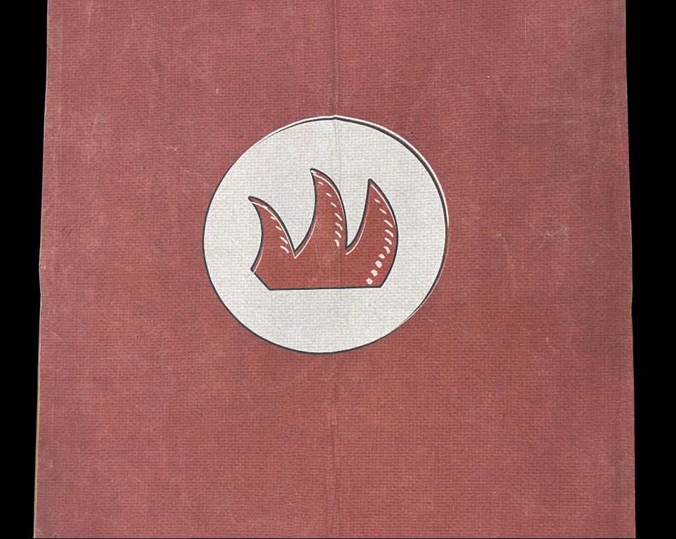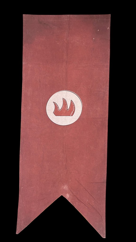 Wandfahne auf bordeauxfarbenem Grund mit Drachenkralle 3,09 x 1,22 m