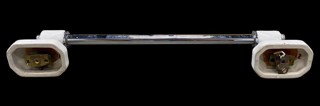 Ende 20. Jh. Glasierte Fayence und verchromte Stange. In gutem Zustand.