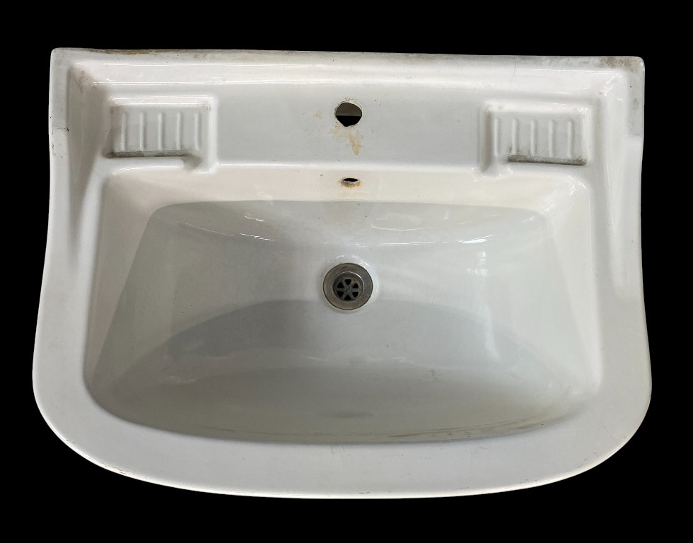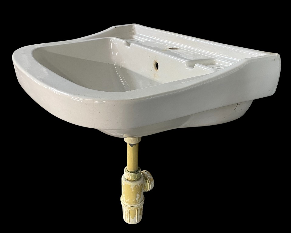 20. Jahrhundert. Glasierte Fayence. In gutem Zustand. Ohne Wasserhahn. Mit Kunststoff-Siphon.