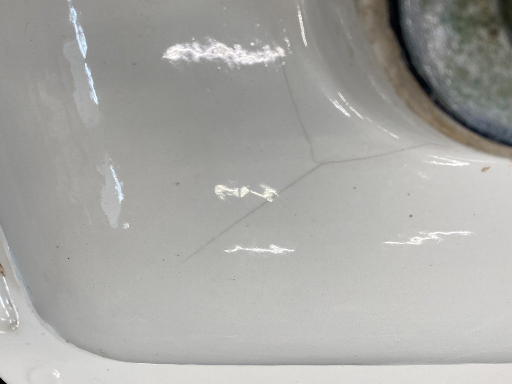 20. Jahrhundert. Glasierte Fayence. Leichter Haarriss am Boden. Ohne Wasserhahn.