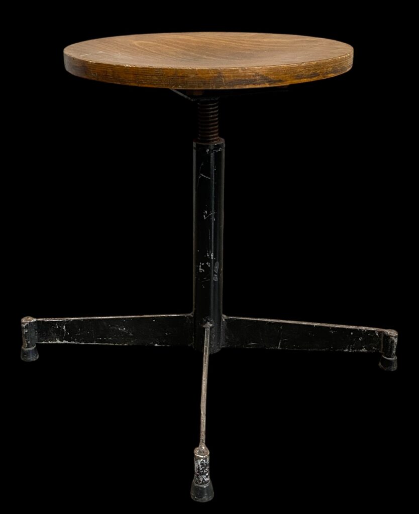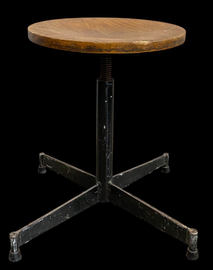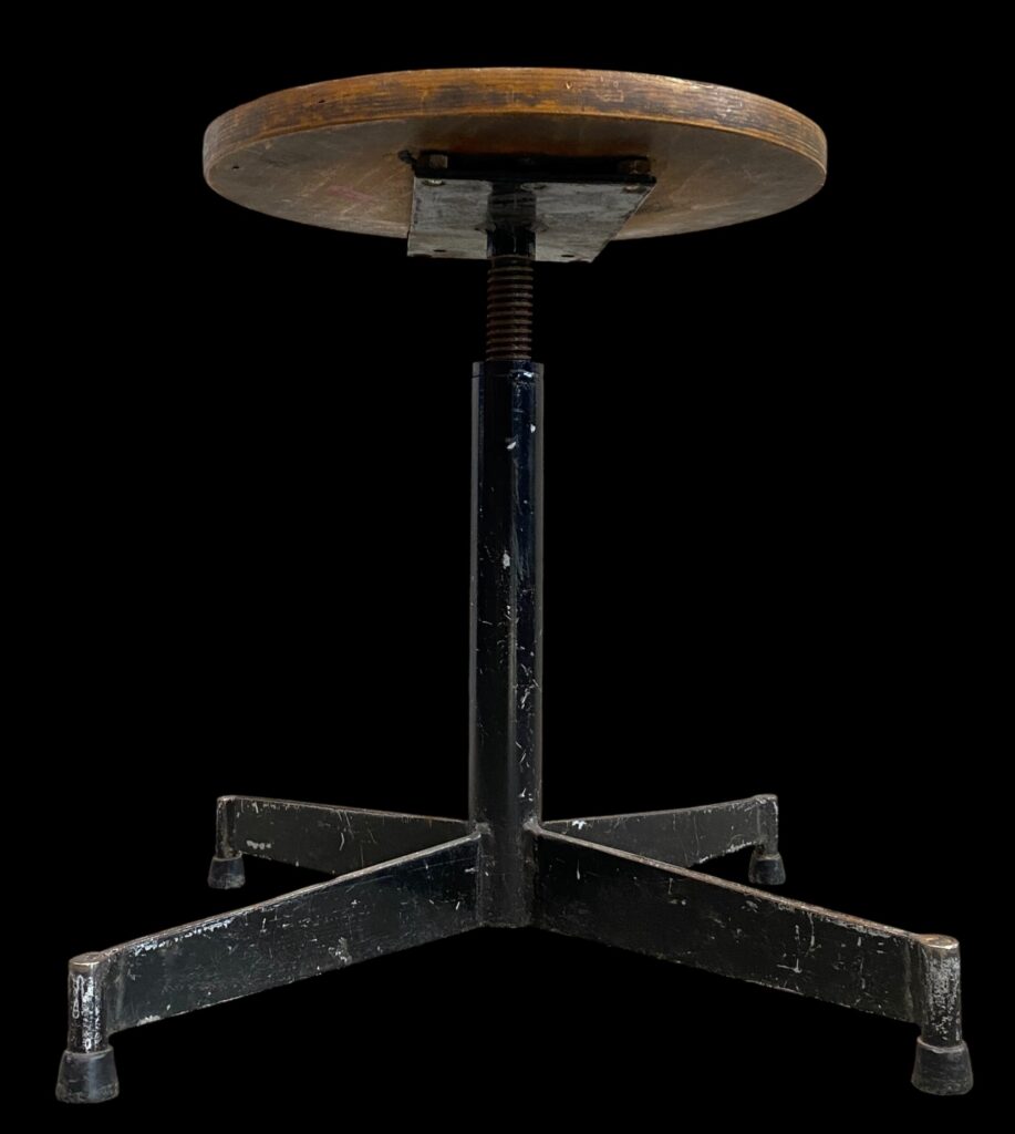 Zweite Hälfte des 20. Jh. Mit Stahlbeinen und Holzsitz. In höchster Position instabil.