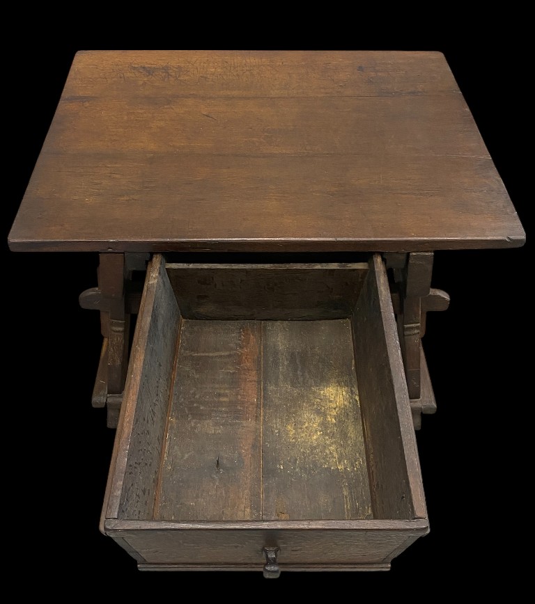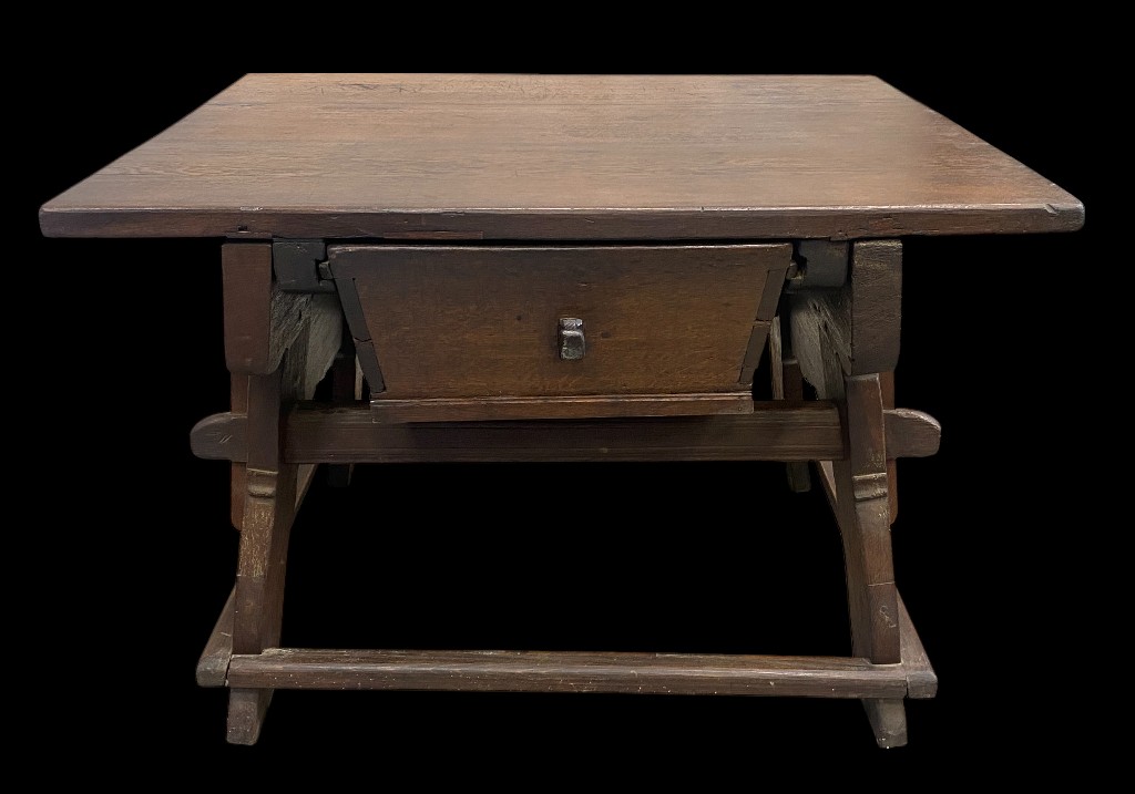 19. Jahrhundert. Massives Eichenholz mit gewachster Oberfläche. Holzkeilbefestigung, abnehmbares Tablett. Vorher renoviert, guter Zustand.