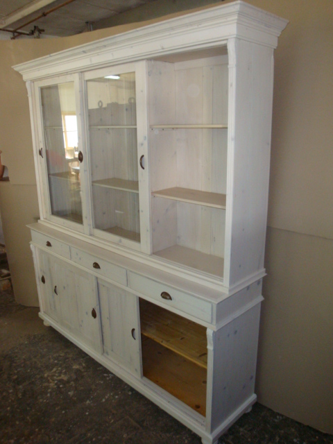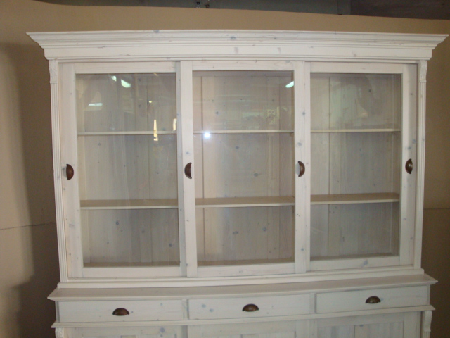 3-section white bookcase: early of 20th c. Old pine bookcase, renewed in its structure. Finished with waterproof paint.