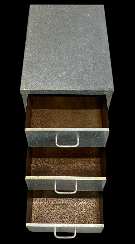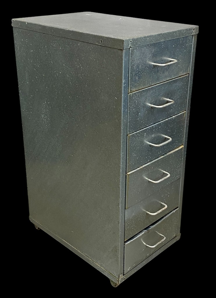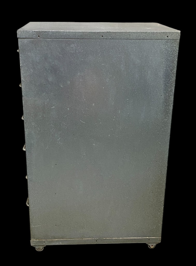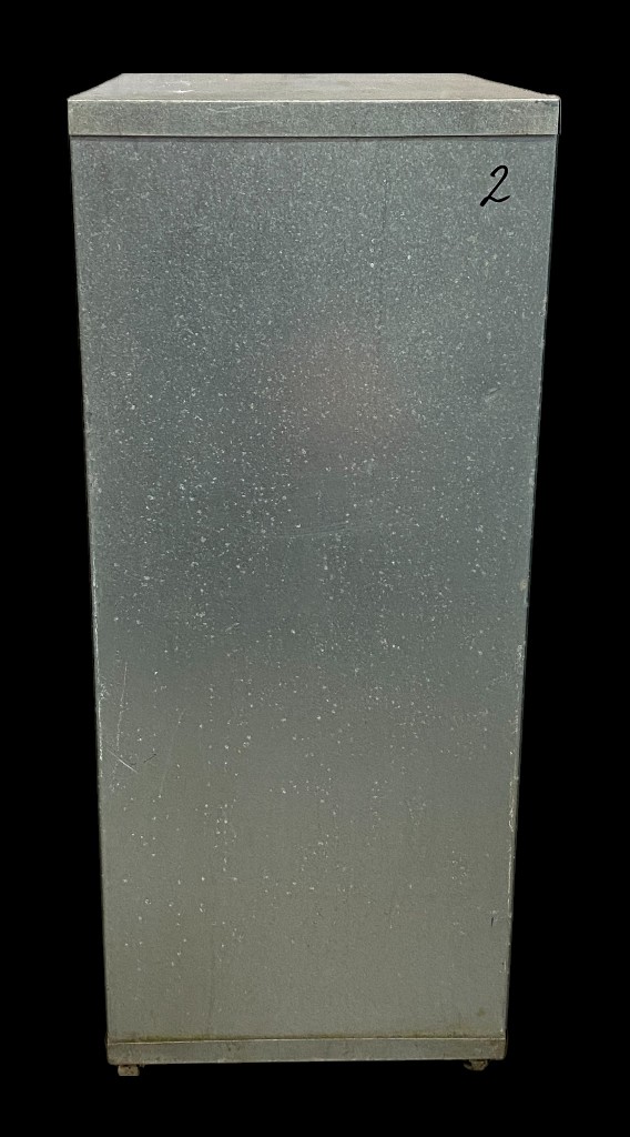 Late 20th century. Painted steel sheet. Patinated, in good condition. On wheels, movable.