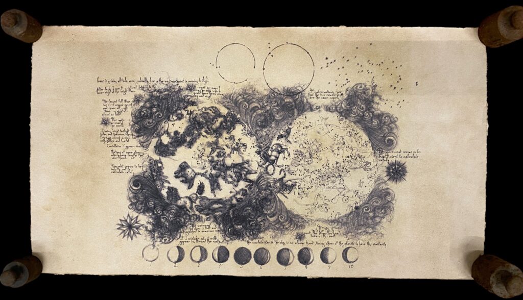 Astronomical / lunar eclipse-style map 48 x 78 cm