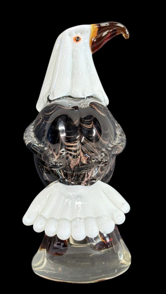 Blown, hot-shaped colored glass with gold dust decoration, in Murano style. Second half of the 20th century.