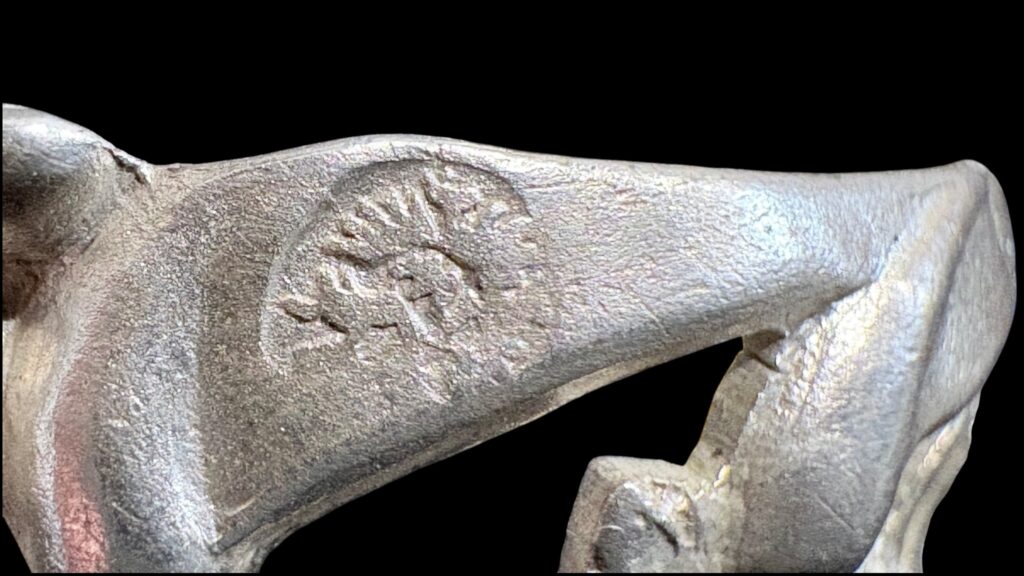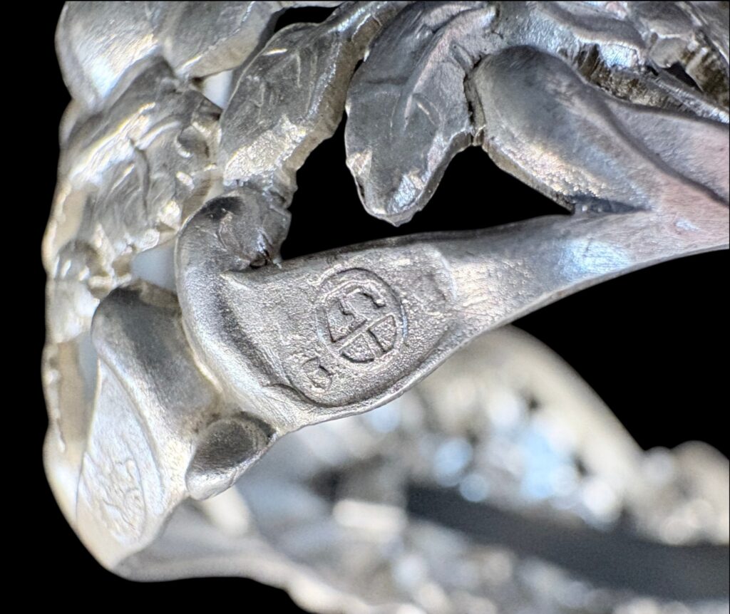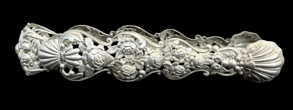 Dated 1836 or 1856(?), antique Viennese 13-loth silver with Austrian eagle hallmark and “Franz Schiffer” (?) maker’s mark. Pierced Viennese rose decoration. Very delicate piece. In good condition.