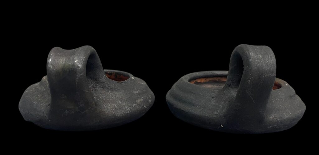 Blackish, flat candle holder with 1 handle, 5 cm