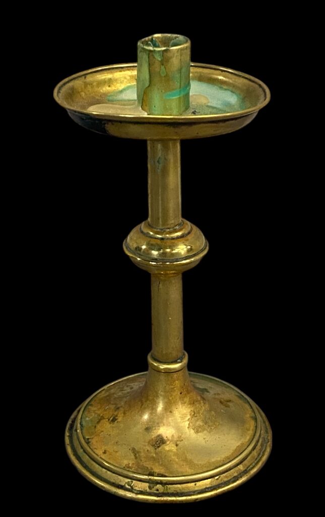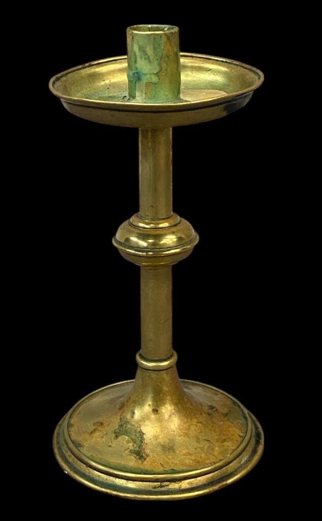 Candlestick with straight-edged plate, with nonus on stem, 17 cm