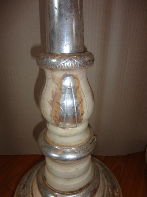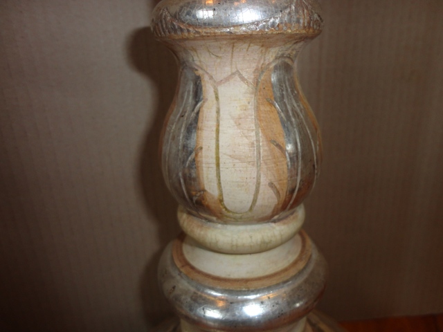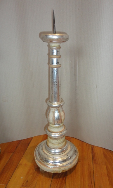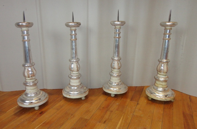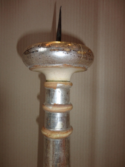 Candlesticks: Middle of 19th c. Wooden base, foil silvered. Beautiful, original, as-found, cleaned condition.
