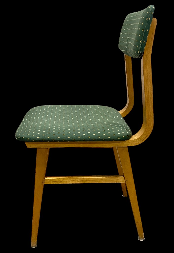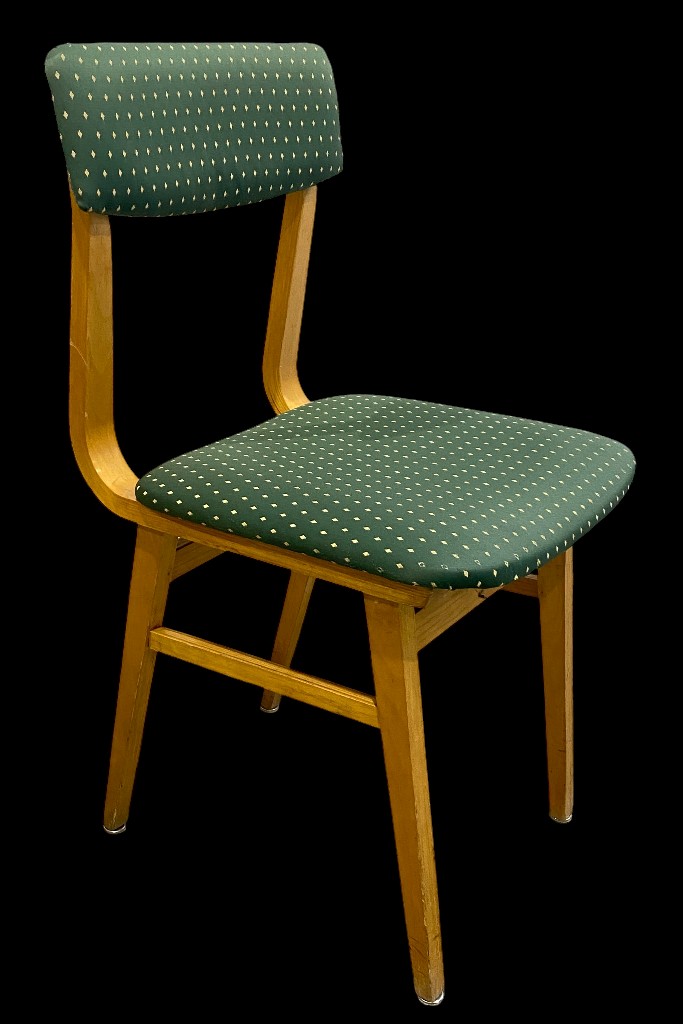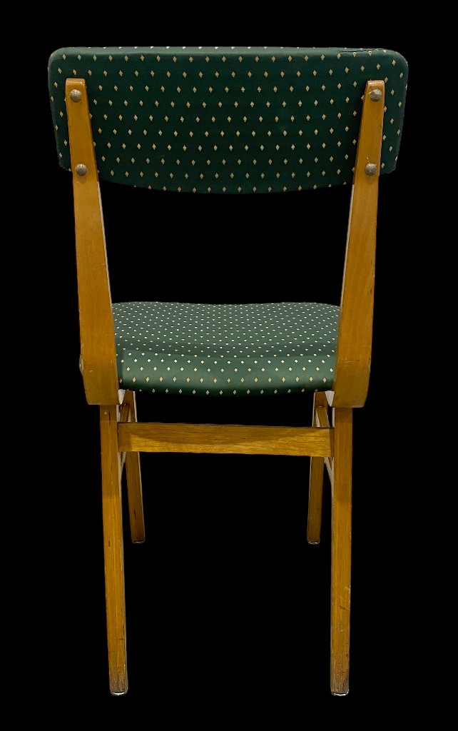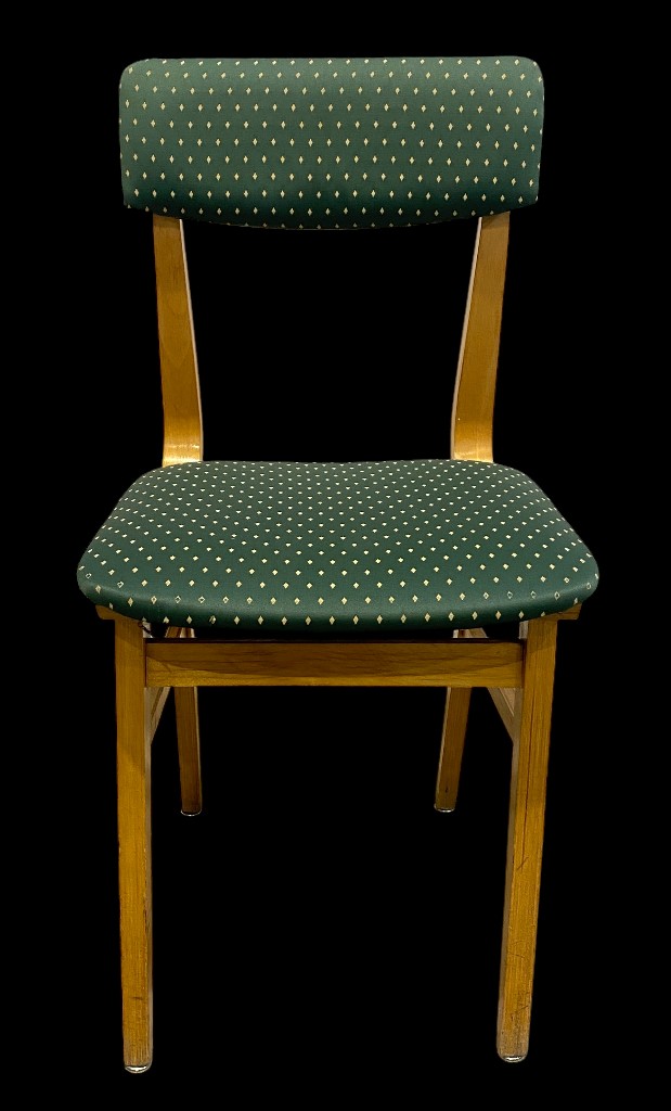 Chair with poison-green diamond-patterned upholstery and straight backrest