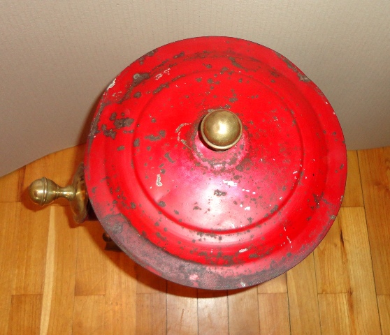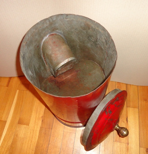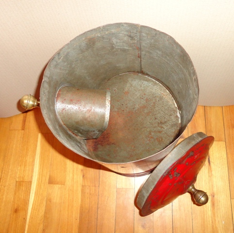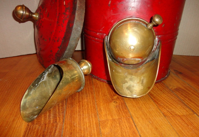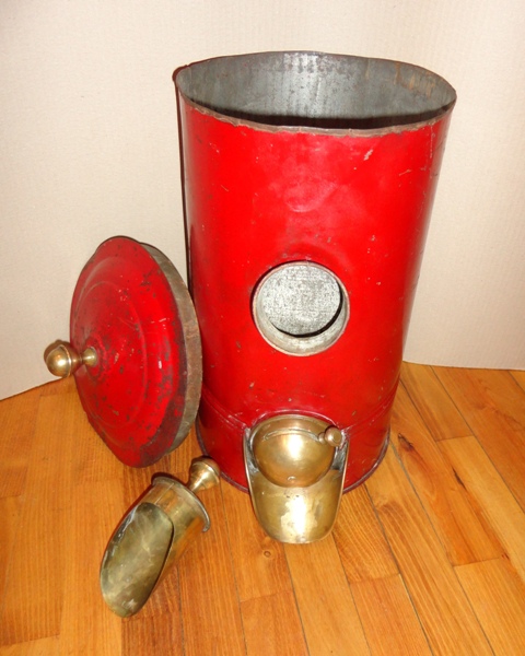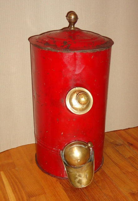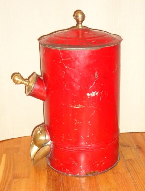 Coffee container: c. 1930. Painted metal sheet, with brass parts. Size: 49×24,5×33 cm