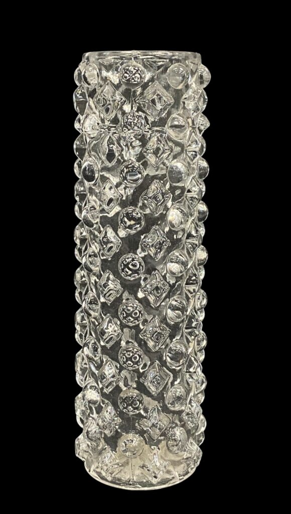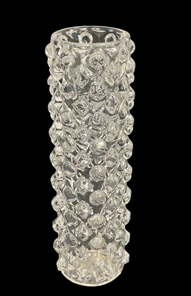 Colorless cylindrical vase with patterned surface 17,5 cm