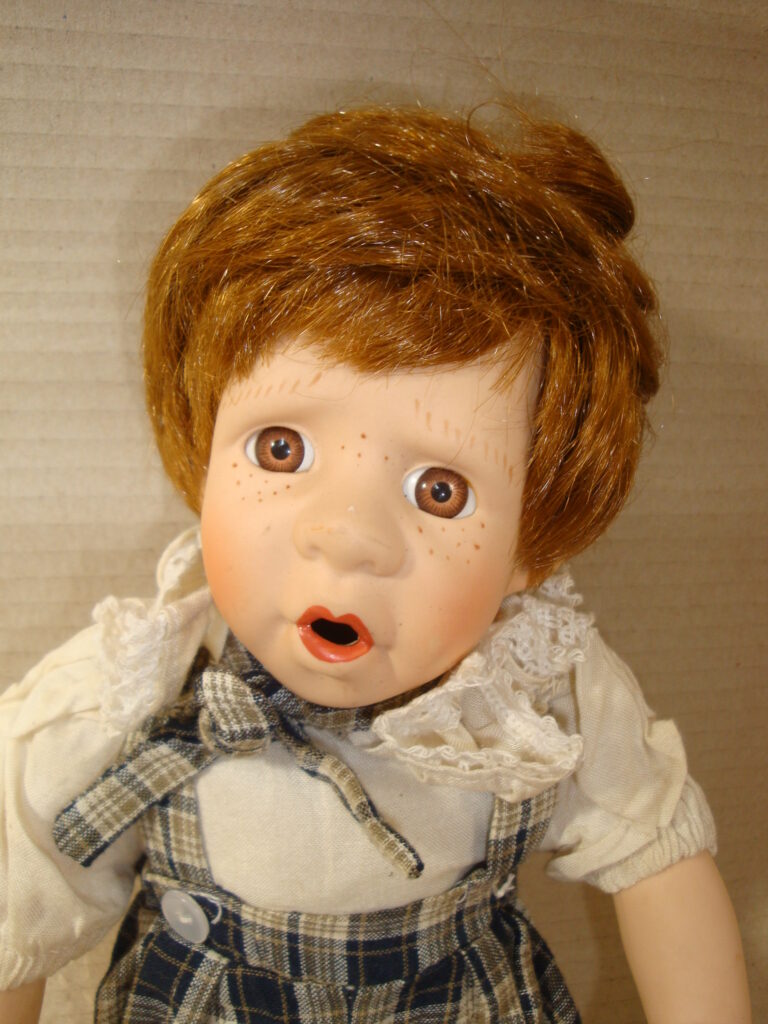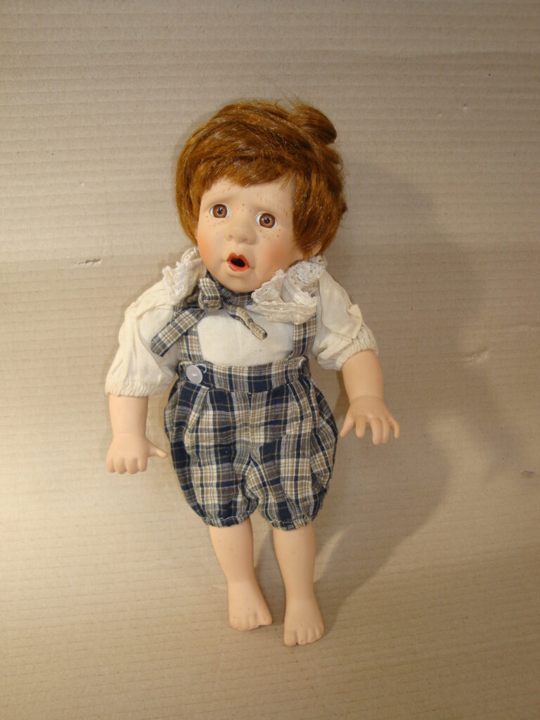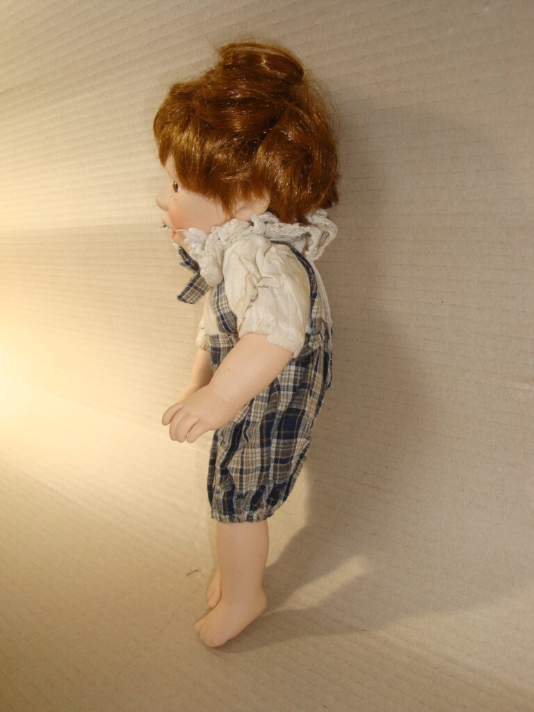 Doll with porcelain head: (not vintage) 20th c. Original, nice condition. Size: 32x17x10 cm