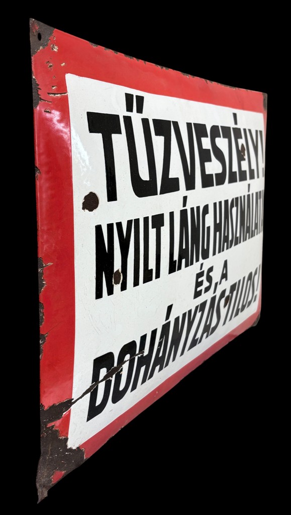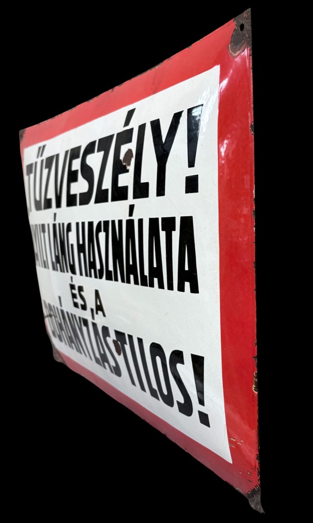 Enamel sign with inscription “Fire hazard – use of open flame and smoking prohibited”