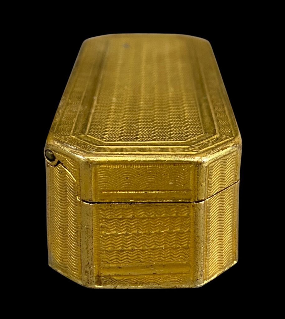 Late 18th century. Fire-gilded brass with guilloché decoration. Good condition.