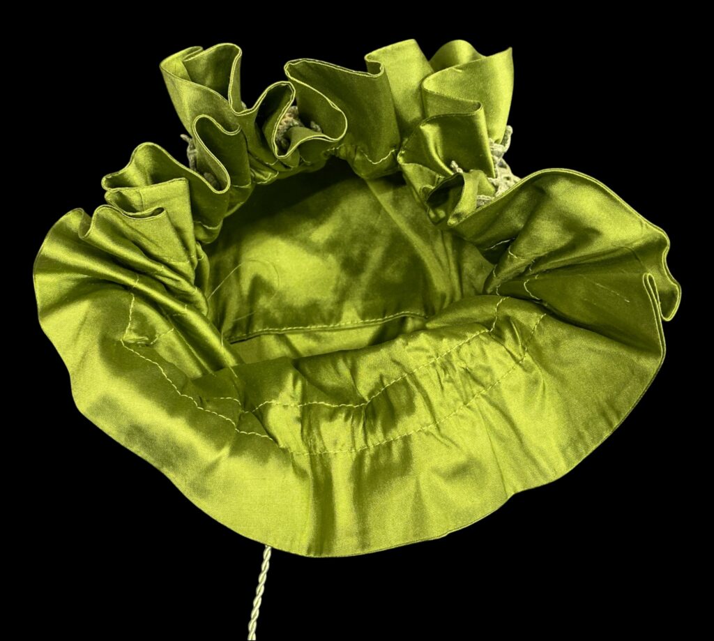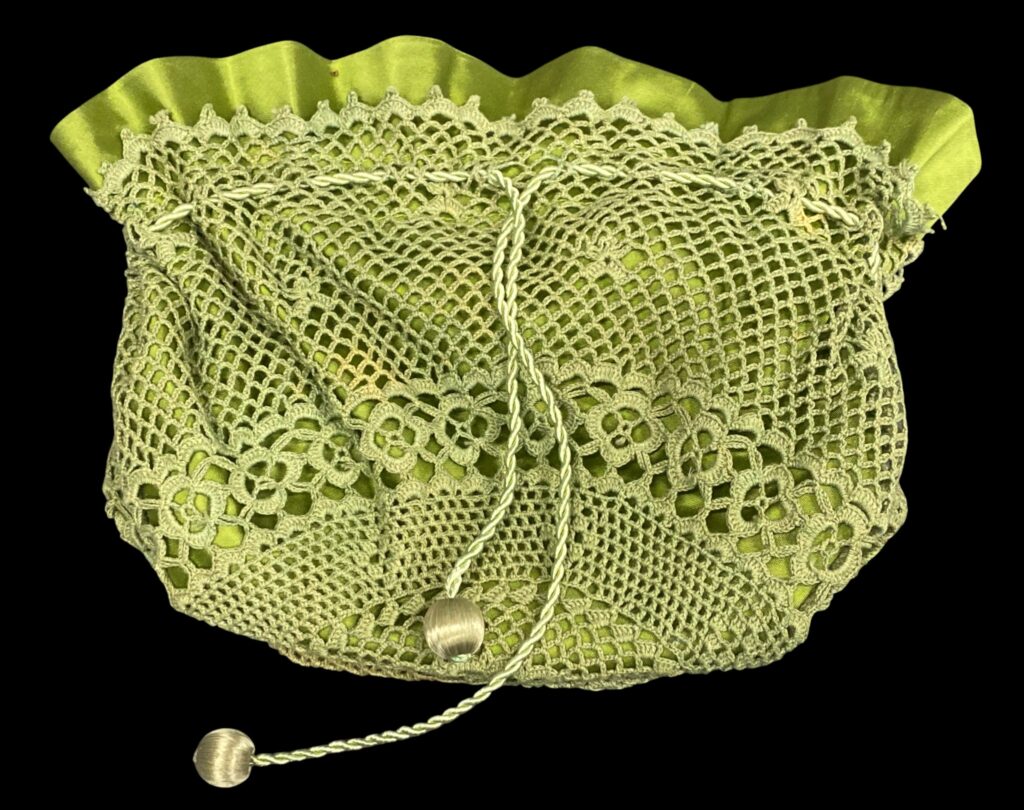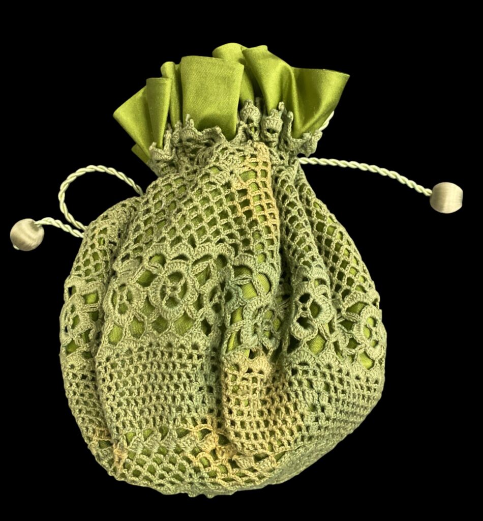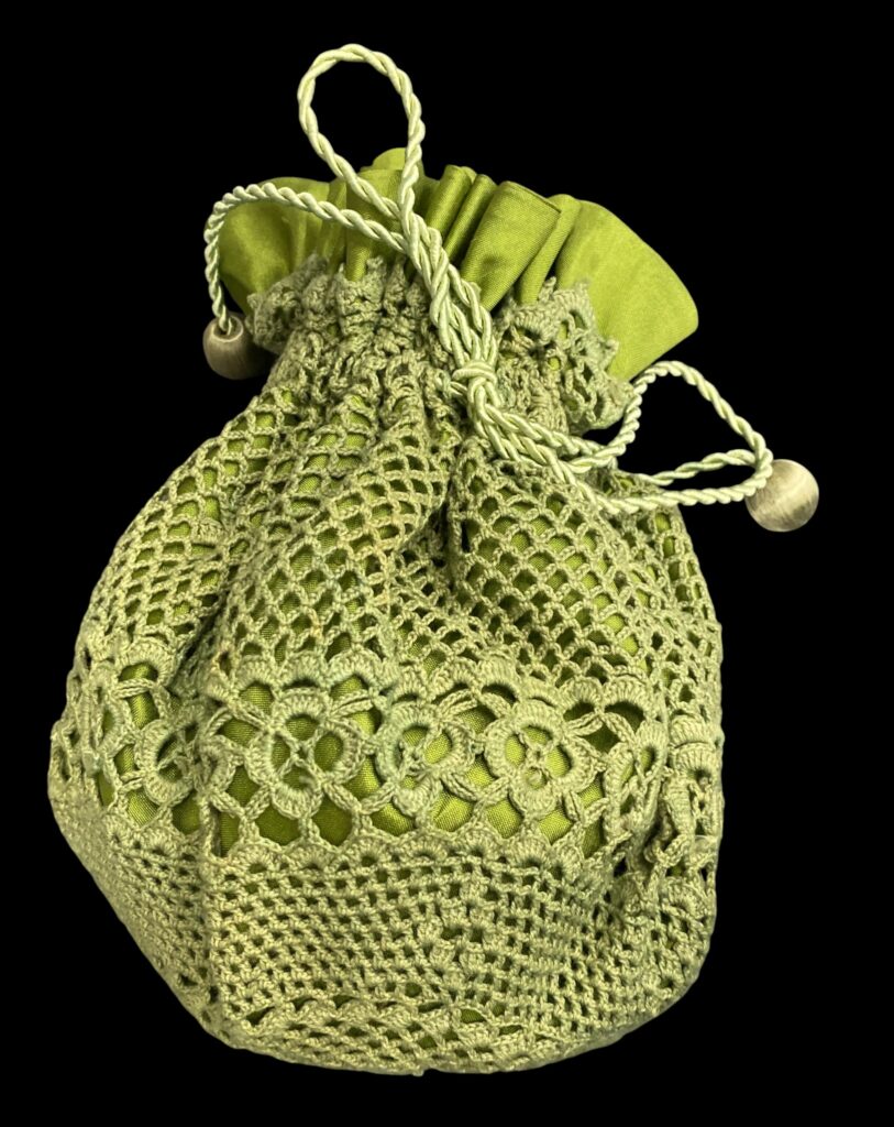Green textile money bag with lace
